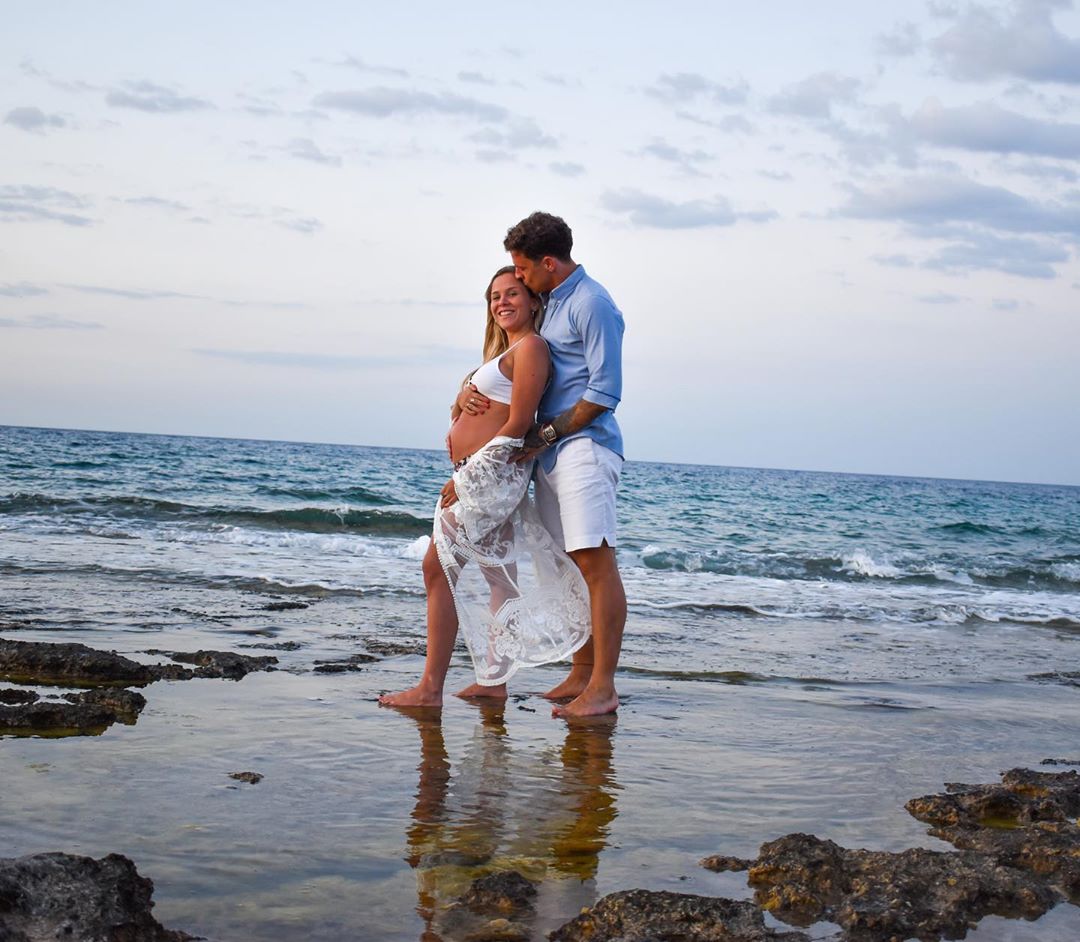 Ο Αργεντινός ποδοσφαιριστής ανήρτησε ένα πανέμορφο στιγμιότυπο στο instagram με φόντο τη θάλασσα, όπου τον βλέπουμε να αγκαλιάζει τη φουσκωμένη κοιλίτσα της συντρόφου του και να της χαρίζει ένα τρυφερό φιλί στο μέτωπο.