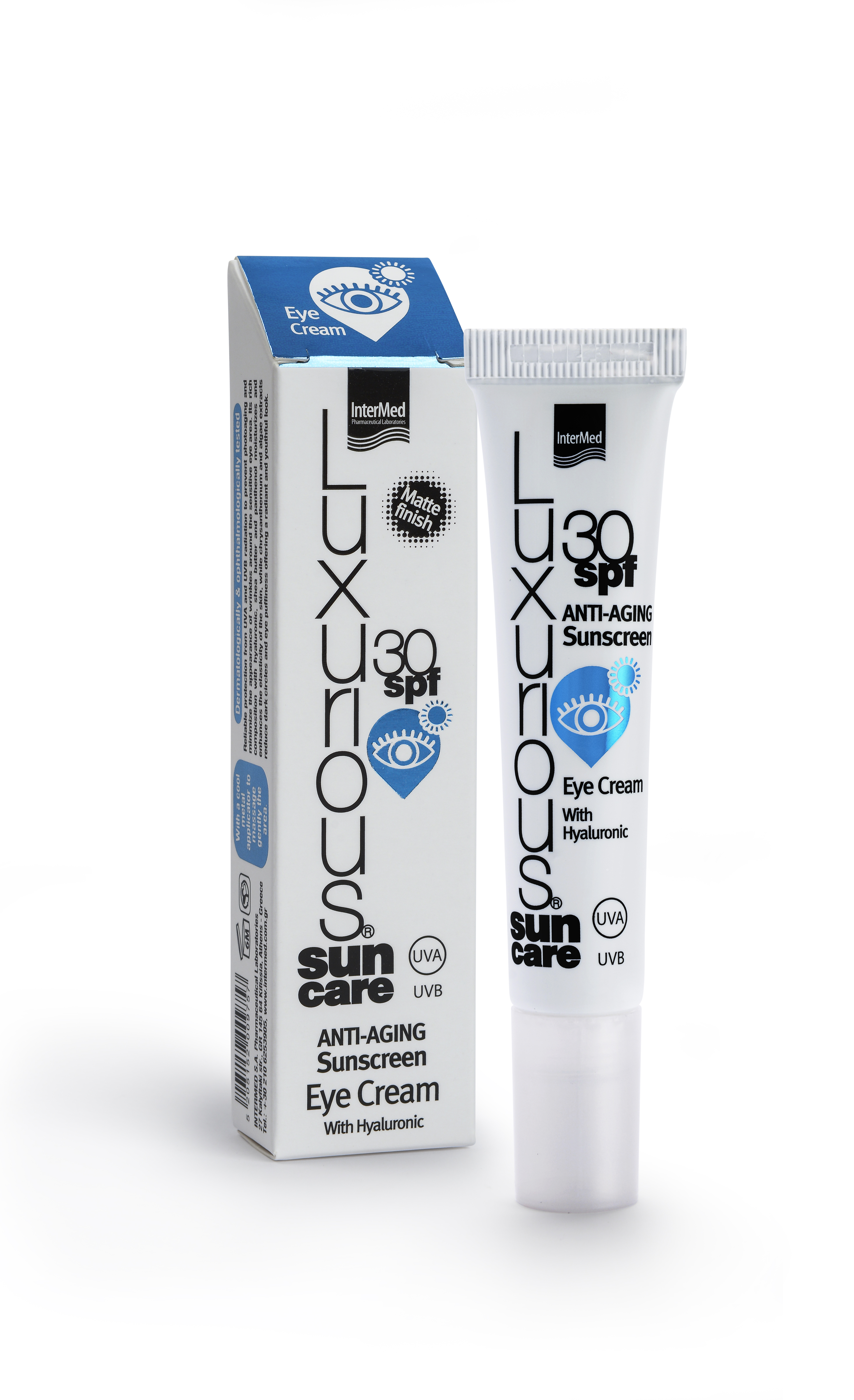 Φρόντισε τα μάτια σου με το Luxurious Sun Care Anti-Aging Sunscreen Eye Cream SPF30 καθώς η περιοχή των ματιών, αποτελεί μία πολύ ευαίσθητη περιοχή, η οποία χρειάζεται εντατική αντηλιακή προστασία, τόσο για την πρόληψη της φωτογήρανσης, όσο και για τη μείωση της εμφάνισης ρυτίδων. Στην περίπτωση αυτή, θα χρειαστούμε ένα προϊόν, δερματολογικά και οφθαλμολογικά ελεγμένο που θα μειώνει τους μαύρους κύκλους και τις σακούλες, χαρίζοντας λαμπερή και νεανική όψη, με μη λιπαρή υφή. Η κρέμα ματιών Luxurious Sun Care Anti-Aging Sunscreen Eye Cream SPF30 προσφέρει αξιόπιστη προστασία από τη UVA / UVB ακτινοβολία, πρόληψη της φωτογήρανσης και μείωση της εμφάνισης ρυτίδων γύρω από την ευαίσθητη περιοχή των ματιών. Με μεταλλική κεφαλή για απαλό μασάζ.