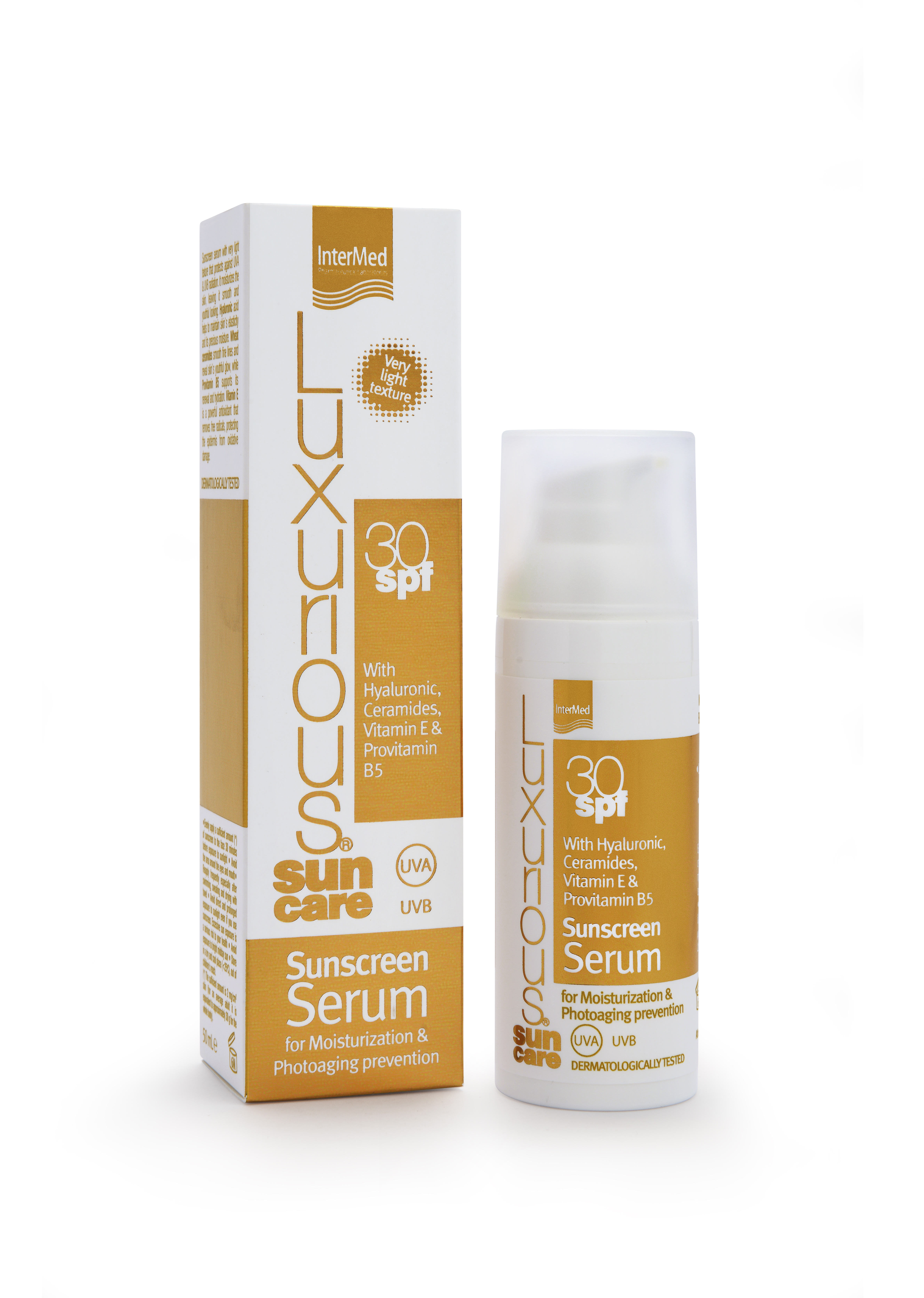 Κάνε αρχή με τον αντηλιακό ορό Luxurious Sun Care Sunscreen Face Serum SPF30 με υαλουρονικό οξύ, με κεραμίδια σιταριού και με βιταμίνη Ε με πολύ ελαφριά υφή που προσφέρει υψηλή προστασία από την επιβλαβή ακτινοβολία UVA & UVB, ενώ παράλληλα ενυδατώνει και αφήνει το δέρμα πιο λείο, αποτελεί το πρώτο βήμα. Η καθημερινή αυτή φροντίδα, θα συμβάλλει στη διατήρηση της ελαστικότητας του δέρματος και της πολύτιμης υγρασίας του.