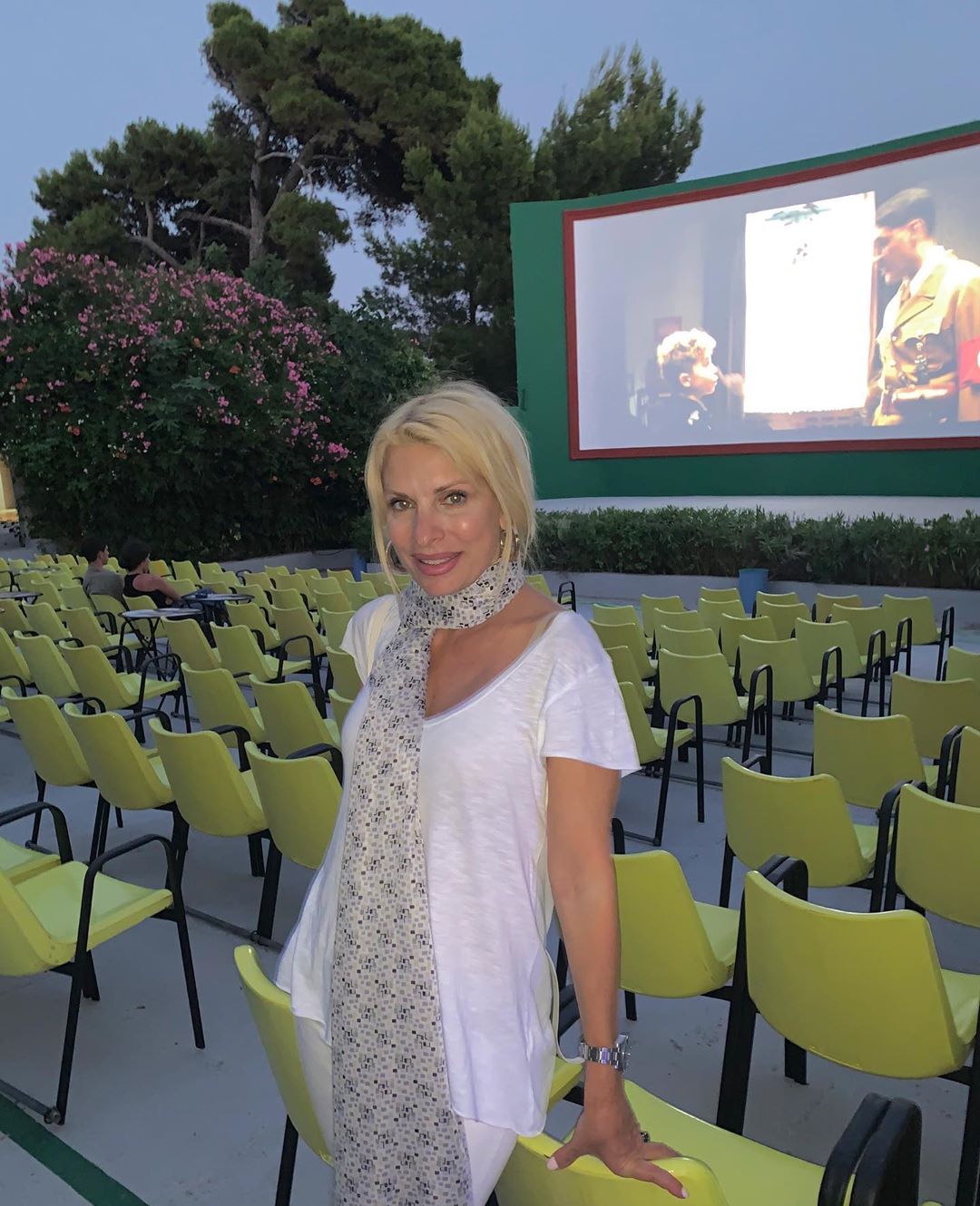 Η παρουσιάστρια θέλησε να μοιραστεί με τους followers της ένα στιγμιότυπο, όπου τη βλέπουμε να ποζάρει στον θερινό κινηματογράφο, που βρίσκεται στη Χώρα του νησιού και επεσήμανε πως κάθε φορά που βρίσκονται εκεί τριγύρω, δεν χάνουν την ευκαιρία να απολαύσουν όποια ταινία προβάλλεται. Δείτε πιο κάτω τη σχετική εικόνα που εντοπίσαμε στα social media: