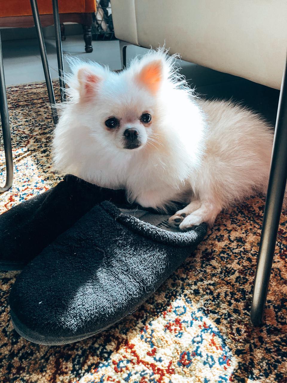 Ναι σωστά κατάλαβες, οι παντόφλες του Πέτρου είναι το αγαπημένο της σημείο και εκεί θέλει να κοιμάται.