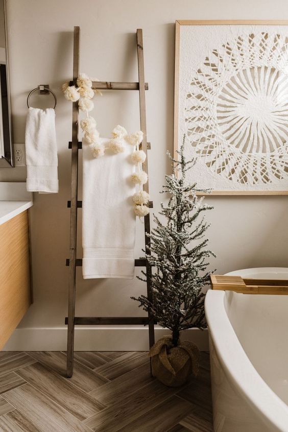 #4. Πέρα από το σαλόνι και την τραπεζαρία, μπορείς να στολίσεις και την τουαλέτα σου βάζοντας ένα μικρό χριστουγεννιάτικο δεντράκι με φωτάκια που ανάβουν με μπαταρίες.