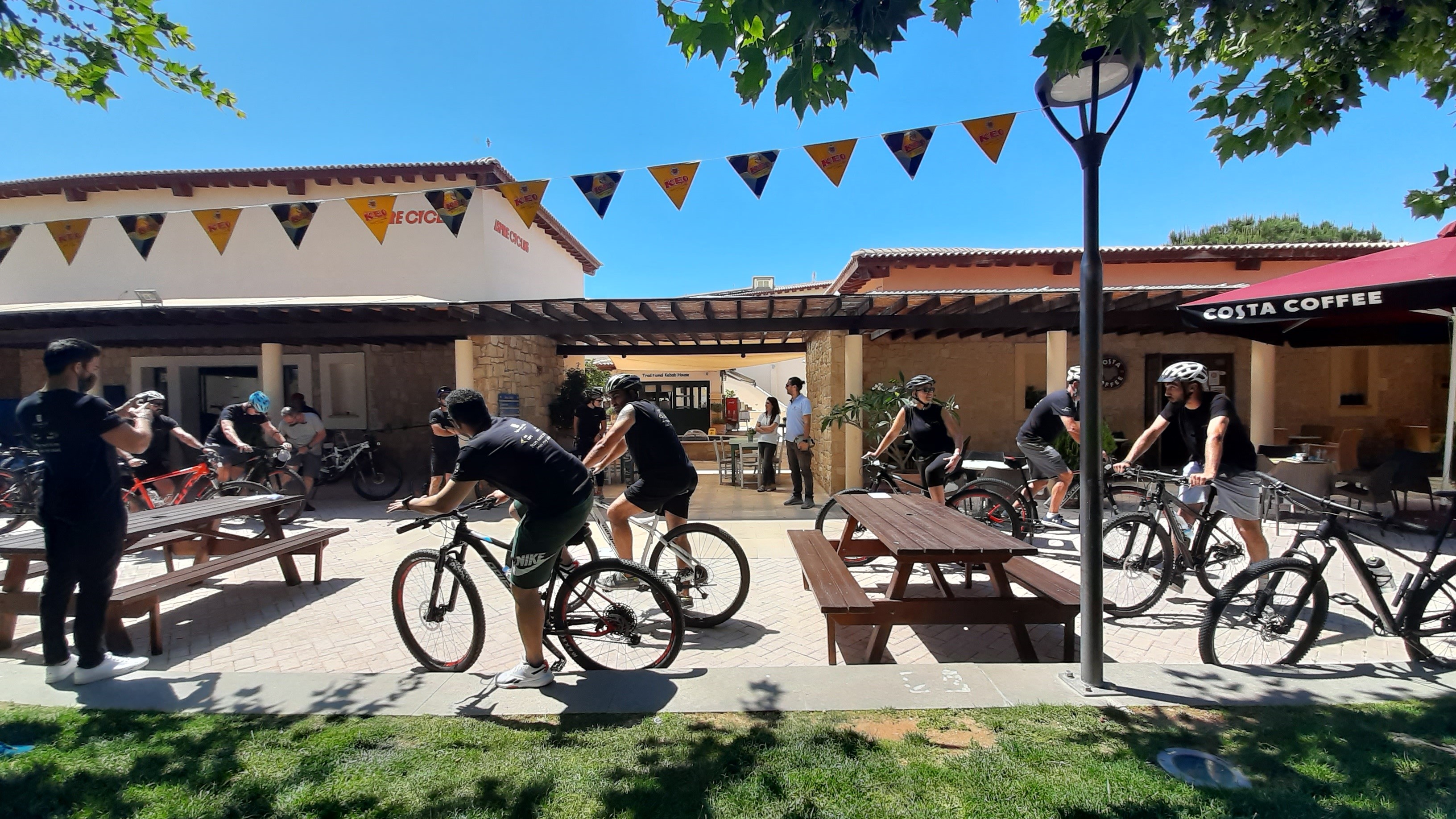 Το προσωπικό τίμησε δεόντως τον επαγγελματικό εξοπλισμό από τον ποδηλατικό σταθμό του Resort, Aspire Cycling Cyprus, ο οποίος ξεκίνησε πρόσφατα τη λειτουργία του στην καρδιά του Village Square. Η μικρή πομπή των ποδηλάτων ξεκίνησε από την καρδιά του Resort και έφτασε στο χώρο ιππασίας. Η σωματική κούραση ξεχάστηκε εύκολα στον τερματισμό στην υπαίθρια μπυραρία της πλατείας.