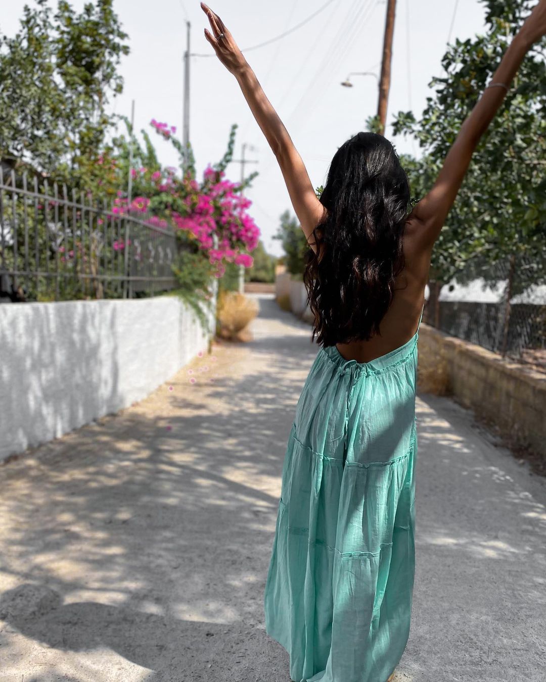 Πράσινο αέρινο φόρεμα με ανοιχτή πλάτη