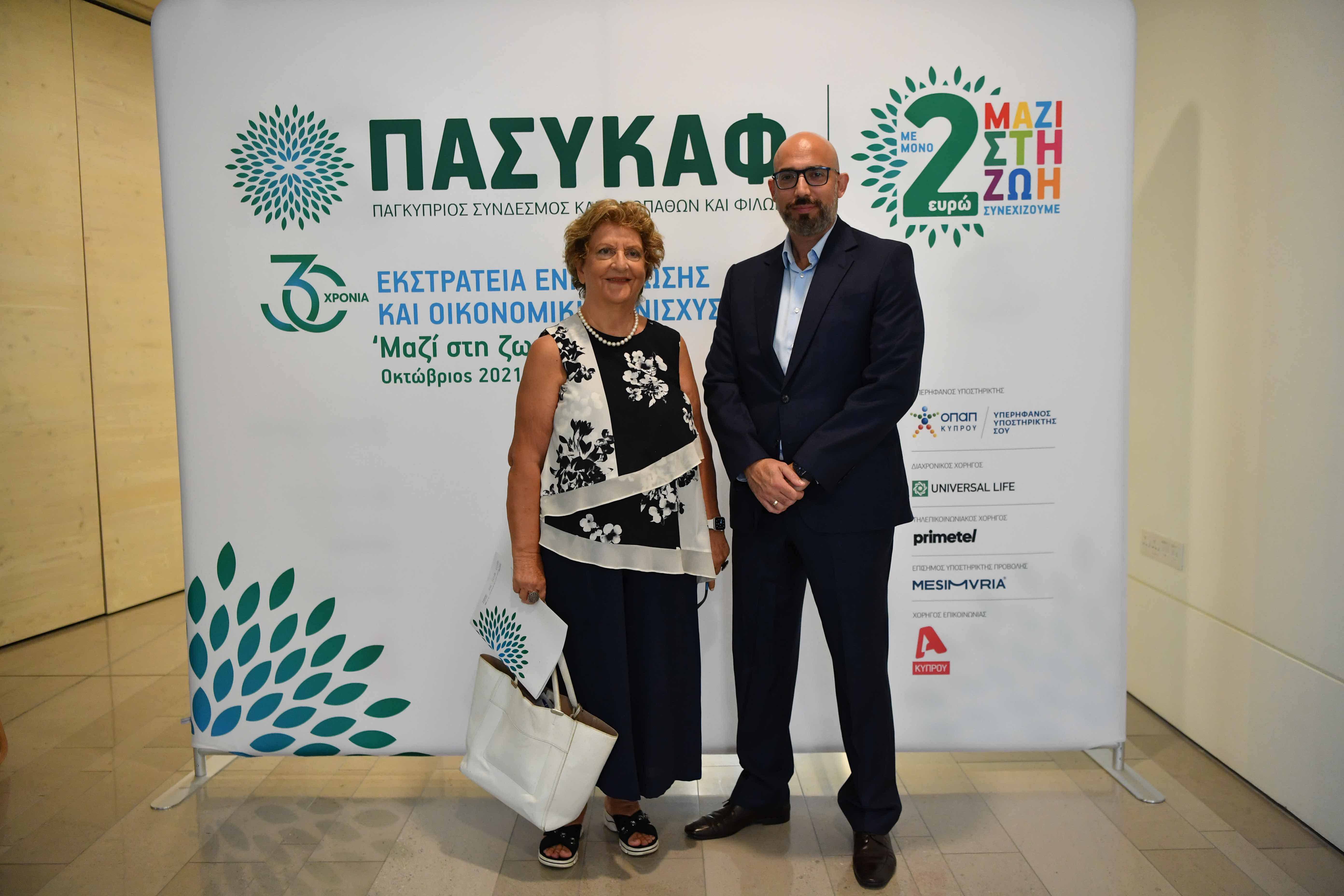 Με σύνθημα ‘Μαζί στη Ζωή’ ο ΠΑΣΥΚΑΦ πραγματοποίησε την Πέμπτη, 30 Σεπτεμβρίου, 2021 Διάσκεψη Τύπου, στη Λεβέντειο Πινακοθήκη. Σκοπός της εκδήλωσης ήταν η παρουσίαση της 30ης Εκστρατείας Ενημέρωσης και Οικονομικής Ενίσχυσης του Συνδέσμου που θα διαρκέσει όλο το μήνα Οκτώβριο, με κύριο στόχο τη συλλογή χρημάτων, για τη συνέχιση, την εξέλιξη και τη συνεχή αναβάθμιση των Υπηρεσιών και των Προγραμμάτων του Συνδέσμου.