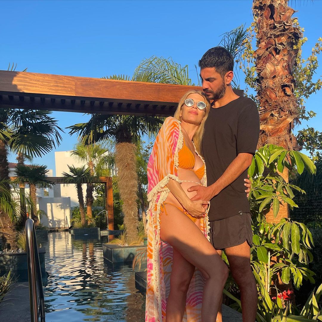 Εκείνη, προκειμένου να του ευχηθεί και διαδικτυακά, μοιράστηκε στον προσωπικό της λογαριασμό στο instagram δύο πολύ τρυφερά στιγμιότυπα από τις καλοκαιρινές τους διακοπές, όπου ποζάρουν πλάι στην πισίνα κι εκείνος της χαϊδεύει τη φουσκωμένη της κοιλίτσα.