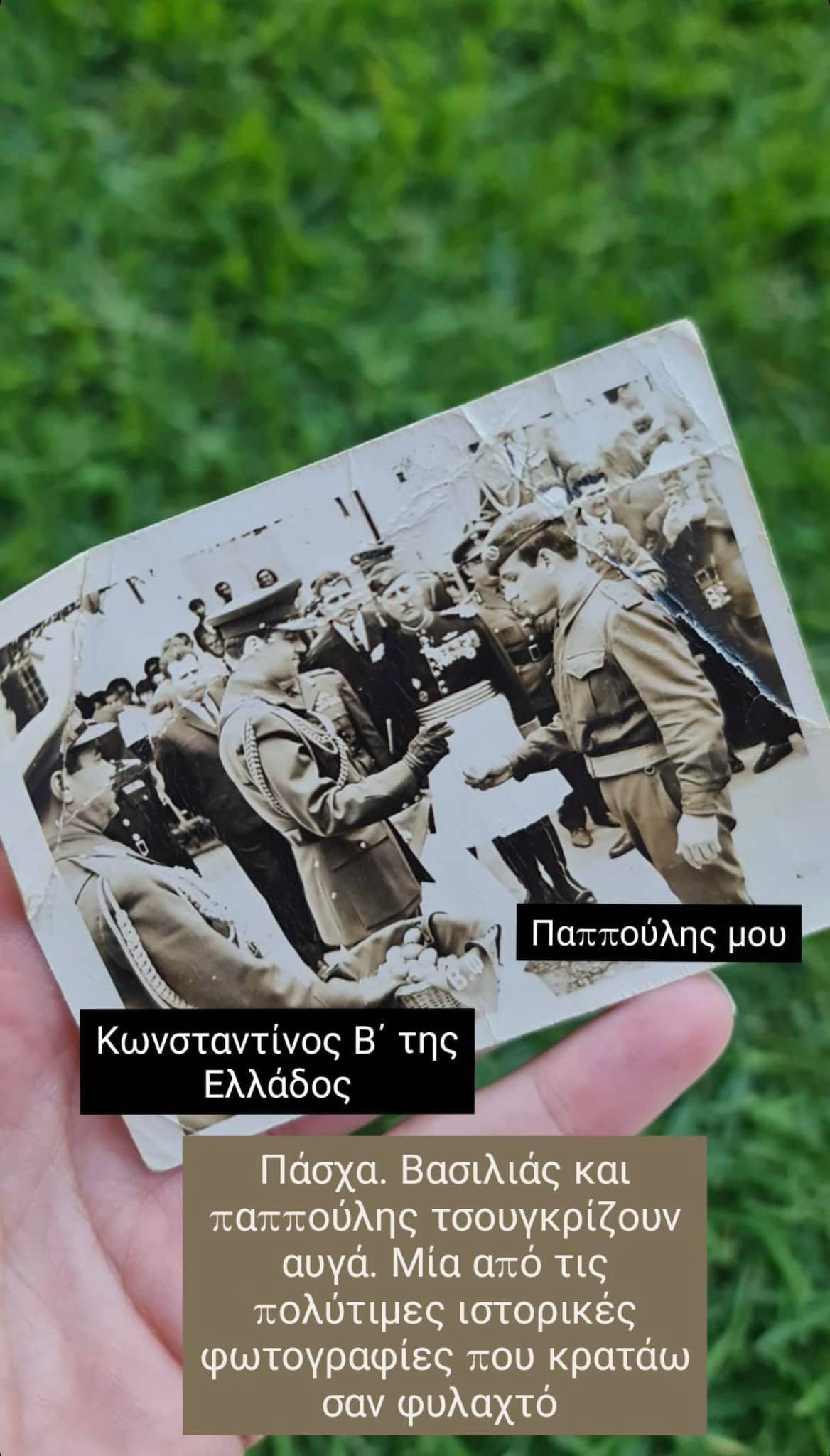 “Πάσχα, Βασιλιάς και Παππούλης τσουγκρίζουν αυγά. Μία από τις πολύτιμες ιστορικές φωτογραφίες που κρατάω σαν φυλαχτό”, έγραψε στην εικόνα. Δείτε πιο κάτω το σχετικό στιγμιότυπο: