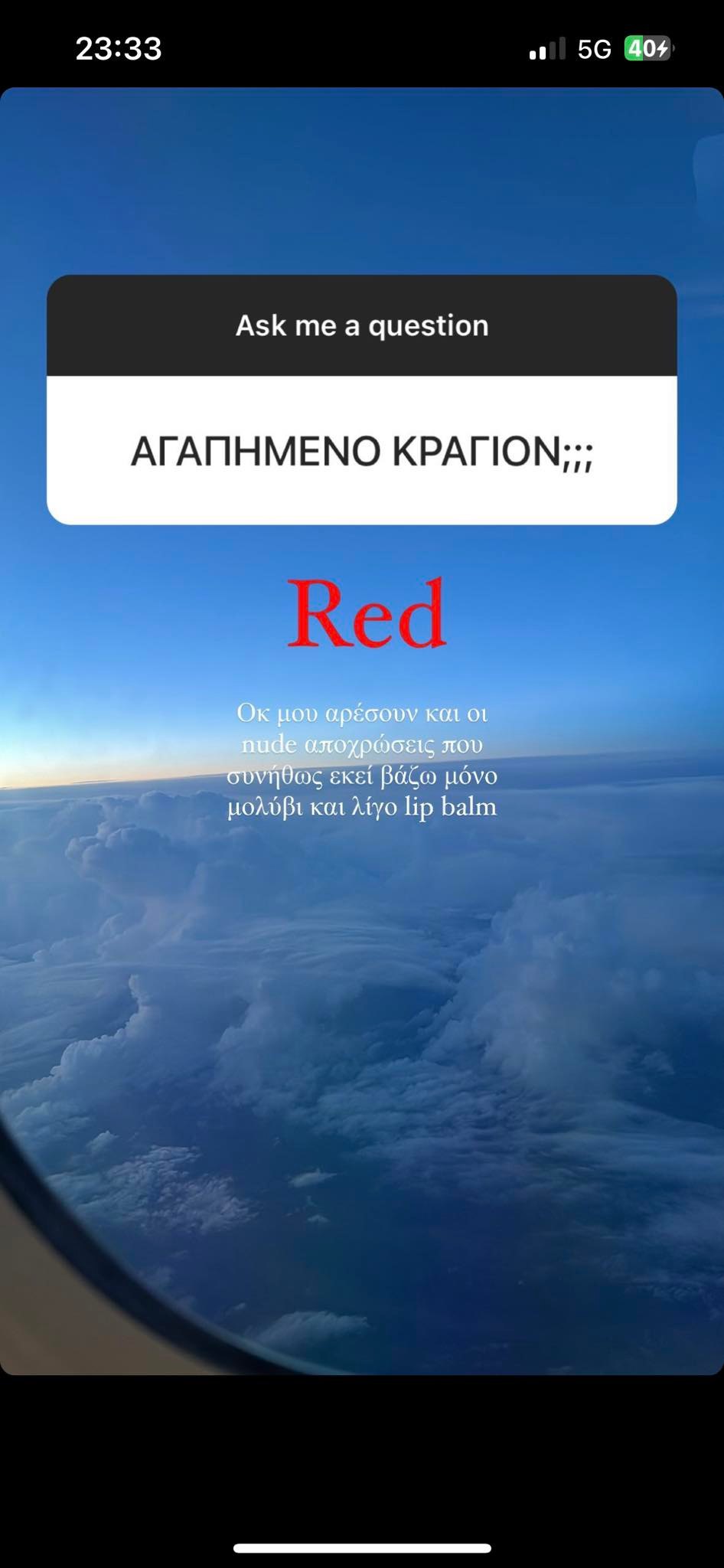 Μια από τις ερωτήσεις που κλήθηκε να απαντήσει ήταν ποιο είναι το αγαπημένο της χρώμα κραγιόν και φυσικά δεν ήταν άλλο από το…κόκκινο!