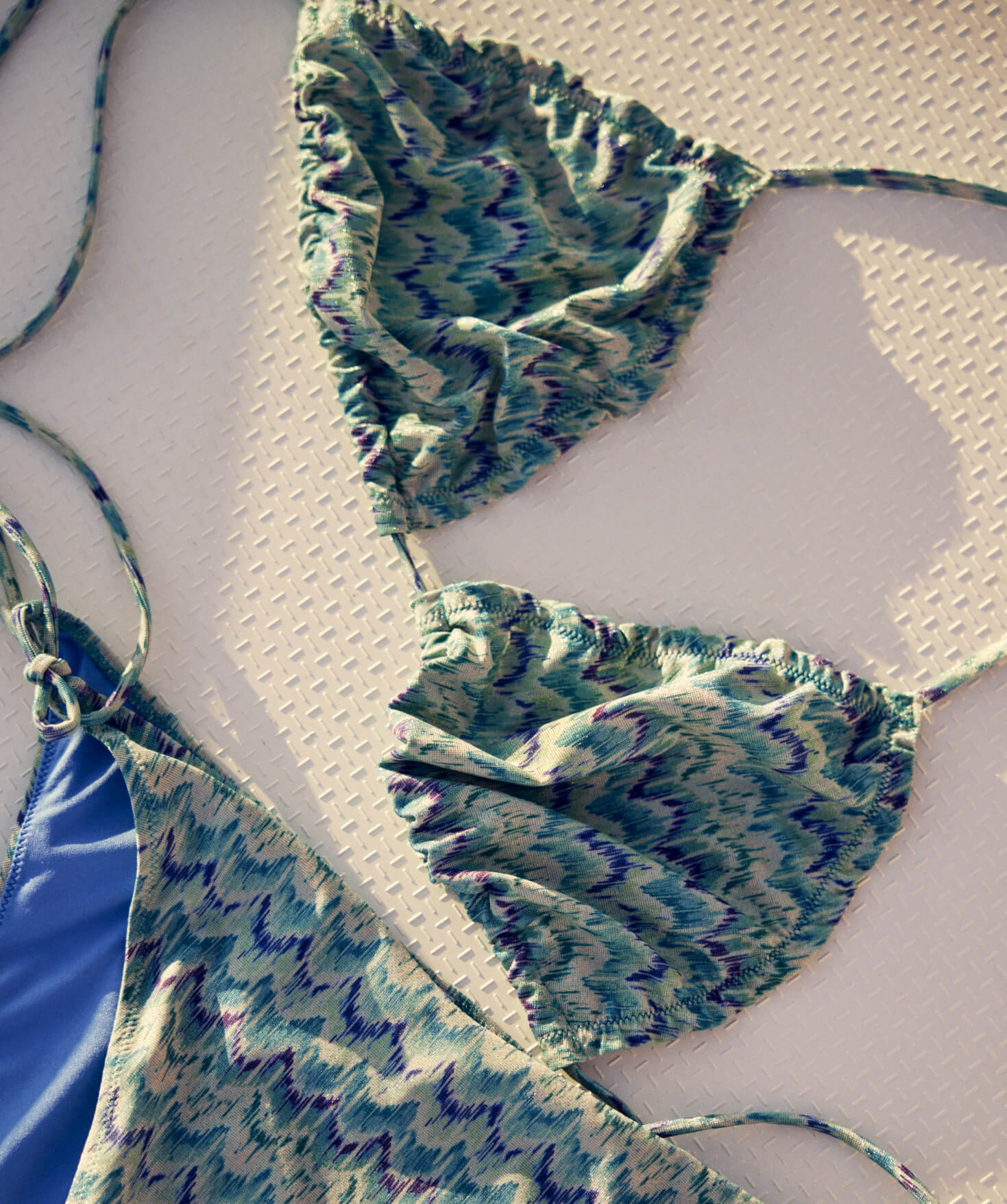 Αναμφισβήτητα το χρώμα του καλοκαιριού αφού η ένωση ουρανού και θάλασσας στο λαμπερό φως του καλοκαιριού δημιουργεί το σκηνικό μέσα στο οποίο απολαμβάνουμε τις ξεγνοιαστές στιγμές της εποχής. Bikini με τριγωνικα tops και χαμηλόμεσα bottoms και ολόσωμα με ασσύμετρα κορδόνια στο διαχρονικό, κομψό και κλασικό μπλε θεωρoύνται must haves για τη βαλίτσα του καλοκαιριού.