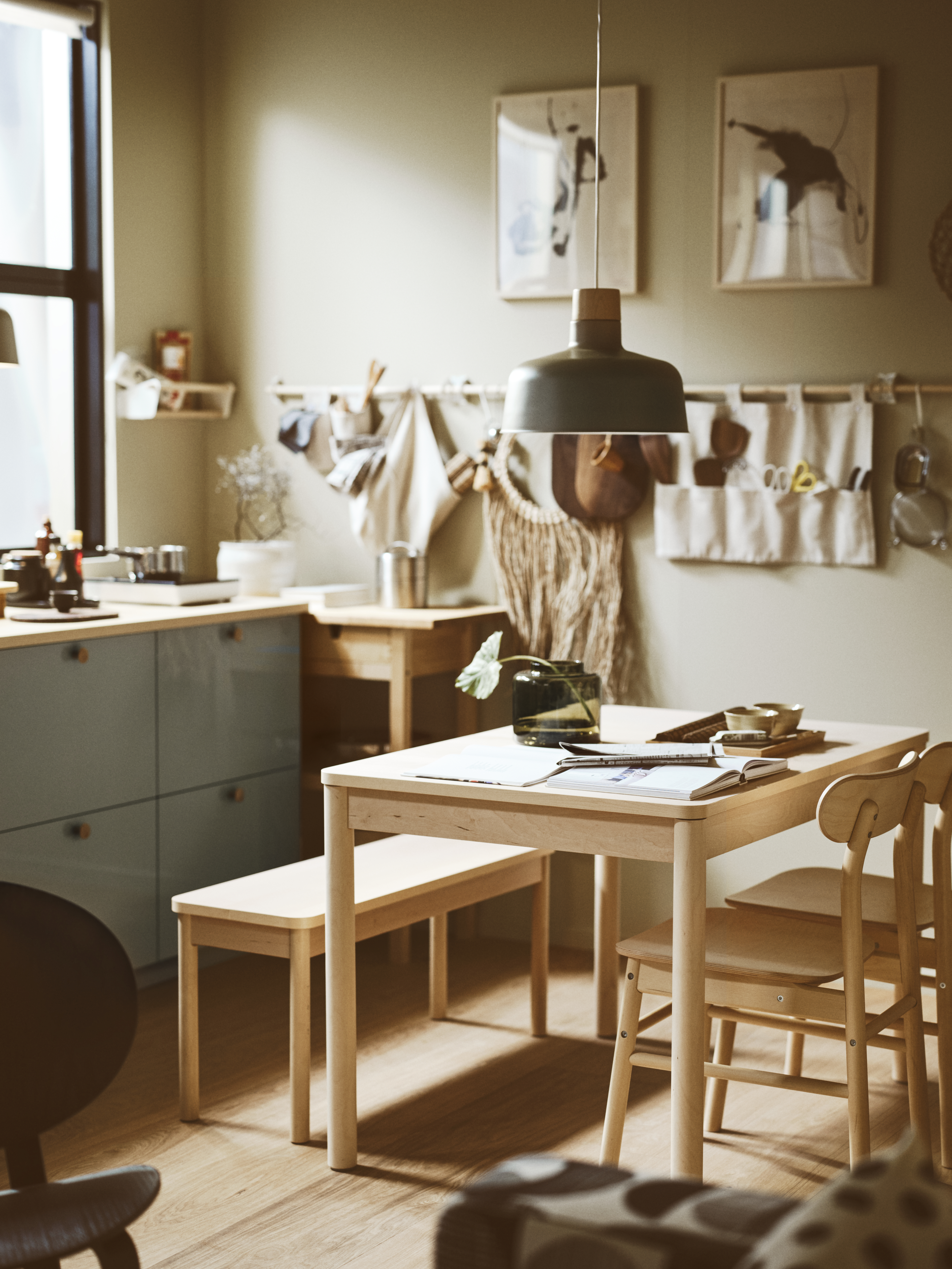 Φυσικά χρειάζεται να μπει κι ένα τραπέζι με καρέκλες για να συγκεντρώνει τους φίλους του και να τρώνε μαζί αυτά που είτε έχετε φτιάξει μόνοι σας είτε τα έστειλε η μανούλα σε τάπερ. Ο χώρος επιβάλει το ιδανικό τραπεζι που ταιριάζει ανάλογα με το πόσο μικρός ή μεγάλος είναι. Πολλες επιλογές για σετ τραπέζι και καρέκλες σας περιμένουν στην ΙΚΕΑ για safe και γρήγορες επιλογές ή αν θέλετε να κάνετε mix & match υπάρχουν δεκάδες λύσεις που μπορείτε να προσαρμόσετε στο στιλ και τις ανάγκες σας.