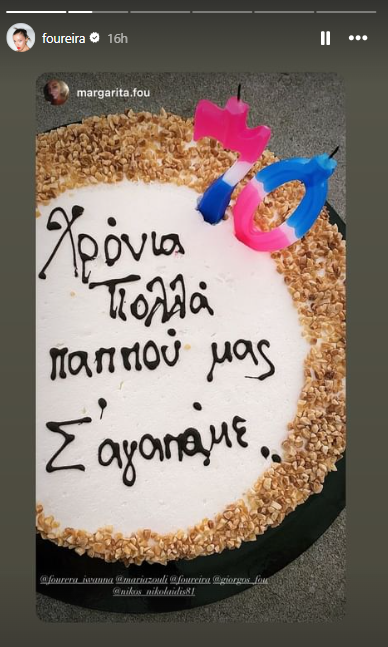 Η τραγουδίστρια μας ενημέρωσε για την γιορτινή ημέρα που είχε η οικογένειά της, μέσα από repost που πραγματοποίησε στον προσωπικό της λογαριασμό στο instagram, στο οποίο η αδερφή της, Μαργαρίτα, φωτογραφίζει την τούρτα του.