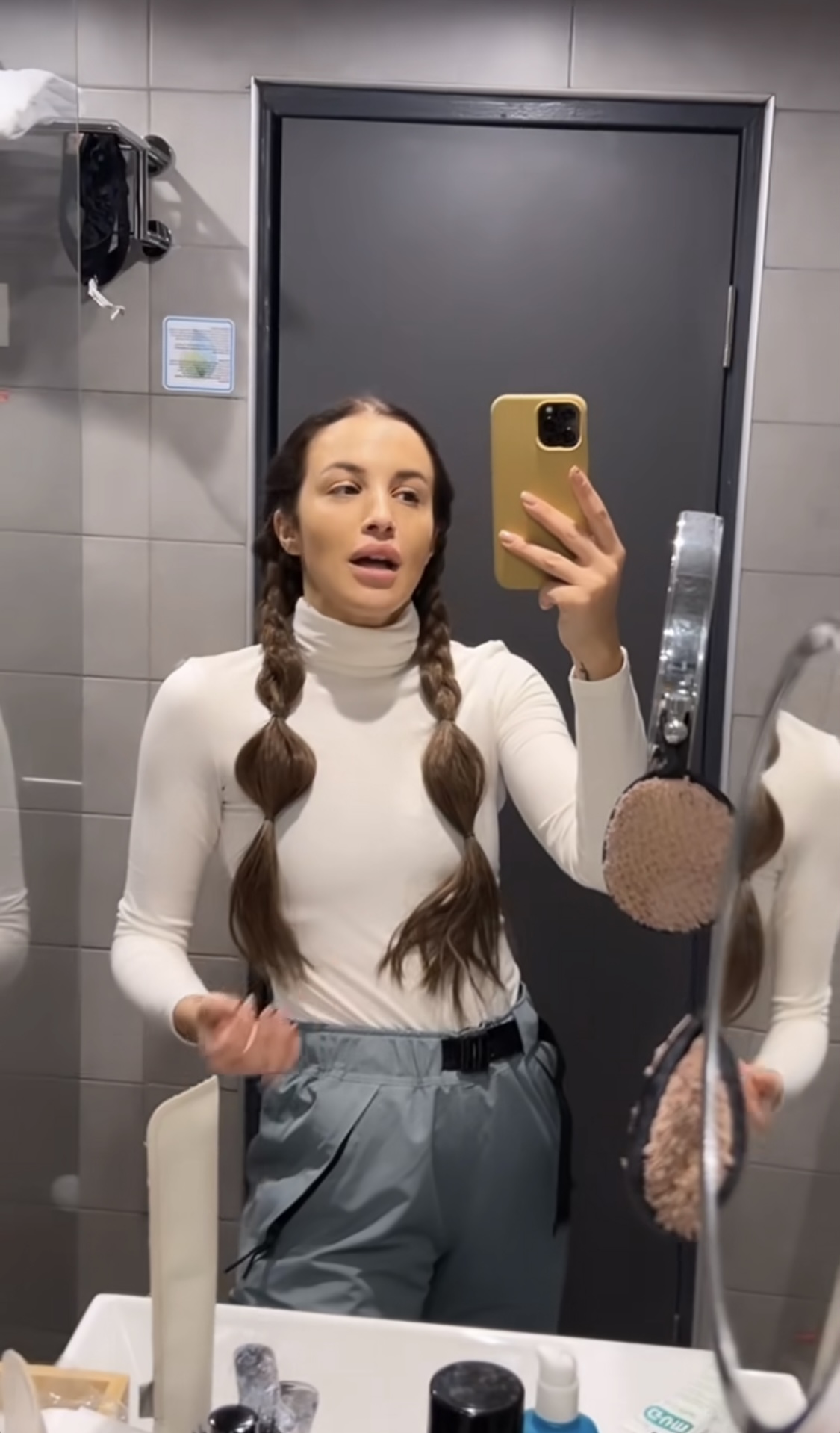 Συγκεκριμένα, οι δυο πλεξούδες που δημιούργησε, εκτός από το οτι κρατούν τα μαλλιά μακριά από το πρόσωπο έτσι ώστε να μην της αποσπούν την προσοχή όταν κάνει σκι, είναι και ένα όμορφο, μοντέρνο χτένισμα.