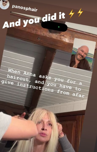 Χαρακτηριστικά, ο κομμωτής της "απόλυτης" έγραψε τα εξής: "Όταν η Άννα ζητά κούρεμα και πρέπει να δώσεις οδηγίες από απόσταση", με την ίδια να γράφει στο repost που πραγματοποίησε: "Και το έκανες".