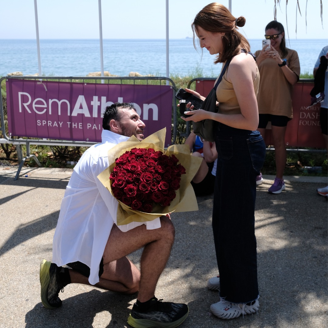 Ο μαραθωνοδρόμος γονάτισε και χάρισε στην αγαπημένη του μονόπετρο.