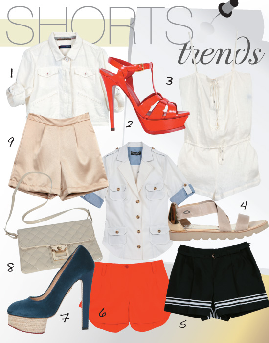 1. Πουκάμισο, Dolce & Gabbana Boutique / 2. Πλατφόρμα Ysl, AMICCI STUDIO / 3. Λευκό jumpsuit / 4. Σανδάλι, Alberto Guardiani, MIXAGE / 5. Σορτς, GUCCI BOUTIQUE / 6. Σορτς, Patrizia Peppe Boutique / 7. Πλατφόρμα. Charlotte Olympia L.A BOUTIQUE / 8. Τσάντα, Blugirl, MIXAGE / 9. Σορτς, G. Englezos, MONOENA.