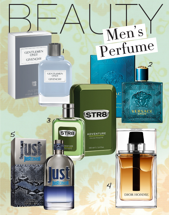 1. Gentlemen Only: με νότες κορυφής: πράσινο μανταρίνι, ροζ πιπέρι, μοσχοκάρυδο και φύλλο σημύδας, Givenchy, €59.50 (50ml) / 2. Eros: ζωντανή και λαμπερή φρεσκάδα που τη χαρίζουν ο συνδυασμός από τα φύλλα του δυόσμου με ιταλικά λεμόνια και πράσινο μήλο, Versace, €60.51 (50ml) / 3. Adventure: για τον άντρα που δεν χρειάζεται να ψάξει για την περιπέτεια, αφού το STR8 προσφέρει την εμπειρία, STR8, €12.38 / 4. Dior Homme: με νότες κορυφής: περγαμόντο Καλαβρίας, κάρδαμο Γουατεμάλας και λεβάντα της Vaucluse, Dior, €60.51 (50ml) / 5. Just: ανοίγει με μια καυτή νότα άγριου πιμέντου, ένα ισχυρό σύμβολο αρρενωπότητας και γοητείας, Just Cavalli, €54 (50ml).