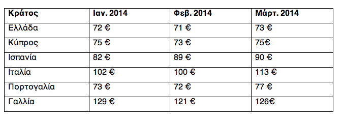 Η Ελλάδα αποδεικνύεται σαφώς η φθηνότερη χώρα σε σχέση με τα κράτη που παραδοσιακά αποτελούν ανταγωνιστικές αγορές ως τουριστικοί προορισμοί. Πιο αναλυτικά, τους τρεις πρώτους μήνες του 2014 η Ελλάδα διατηρεί τις ξενοδοχειακές τιμές κάτω από τα 75 ευρώ ανά διανυκτέρευση, με υψηλότερη το Μάρτιο στα 73 ευρώ και χαμηλότερη το Φεβρουάριο στα 71 ευρώ. Στην ίδια τροχιά χαμηλών τιμών και η Κύπρος με μέση τιμή διανυκτέρευσης για Ιανουάριο και Μάρτιο στα 75 ευρώ και το Φεβρουάριο στα 73 ευρώ. Στον αντίποδα η Ιταλία και η Γαλλία που παρουσιάζονται οι πιο ακριβές και τους 3 μήνες, με τη Γαλλία να σπάει το φράγμα των 120 ευρώ ανά διανυκτέρευση για το Μάρτιο (126 ευρώ) και την Ιταλία να ακολουθεί με 113 ευρώ ανά διανυκτέρευση για δίκλινο δωμάτιο.