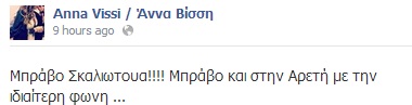 «Μπράβο Σκαλιωτουα!!!! Μπράβο και στην Αρετή με την ιδιαίτερη φωνη ...», έγραψε η Άννα.