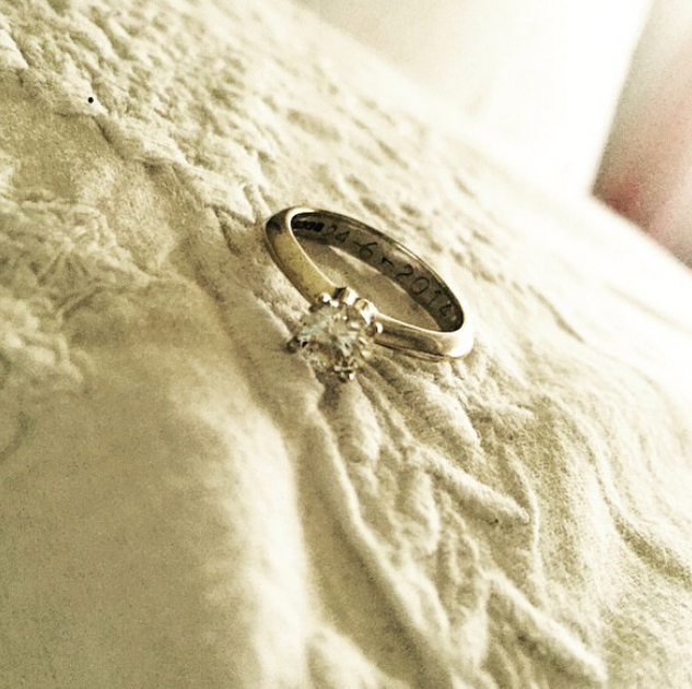Το μοντέλο πόσταρε στον προσωπικό της λογαριασμό το μονόπετρο που της χάρισε ο ποδοσφαιριστής και όπως μπορείτε να διακρίνετε, στο εσωτερικό είναι χαραγμένη η ημερομηνία που έγινε η πρόταση.