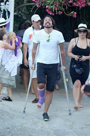Κάπως έτσι ο φωτογραφικός φακός του FTHIS.GR απαθανάτισε τον τραγουδιστή Dave Grohl και μέλος του συγκροτήματος Foo Fighters με πατερίτσες στην πιο κοσμική παραλία του νησιού. Ο Dave Grohl δεν πτοήθηκε από το γύψο στο δεξί του πόδι, έτσι πήρε την σύζυγο του Jordyn Blum και τα παιδιά τους και κατέφτασαν στην χώρα μας για λίγες ημέρες ξεγνοιασιάς και χαλάρωσης.