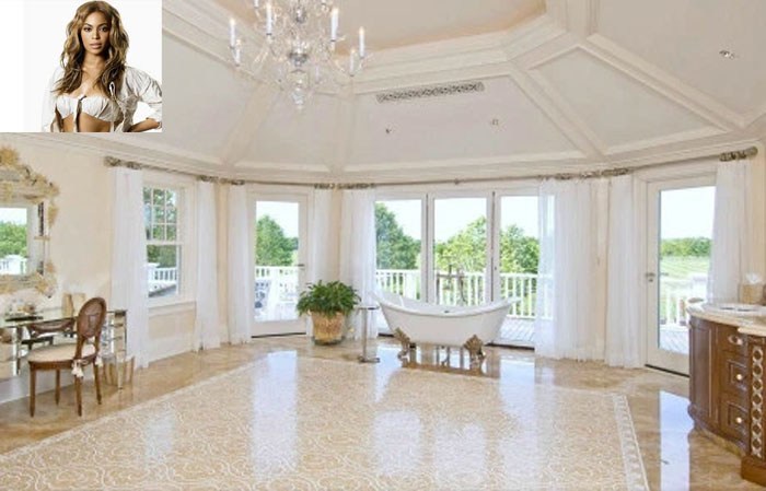 Το υπερπολυτελές μπάνιο της τραγουδίστριας και ηθοποιού θυμίζει κάτι από παράδεισο. Τα μεγάλα παράθυρά του και οι γυάλινες μπαλκονόπορτες που ξεκινούν από το ταβάνι και καταλήγουν στο πάτωμα προσφέρουν στον χώρο άπλετο φυσικό φως. Μία μπανιέρα στο κέντρο του μπάνιου είναι ιδανική για αφρόλουτρα και απόλυτη χαλάρωση με τις ώρες, ενώ ο χώρος περιλαμβάνει και μία εντυπωσιακή ντουζιέρα.