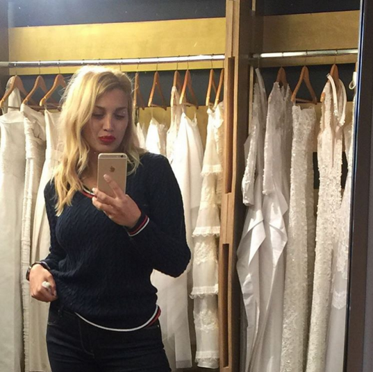 Μία φωτογραφία ανήρτησε στον προσωπικό της λογαριασμό στο instagram η Κωνσταντίνα Σπυροπούλου, η οποία ποζάρει μπροστά από τα νυφικά των Mi-Ro designers.