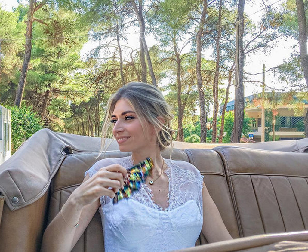 Το make up και το χτένισμα της νύφης επιμελήθηκε ο Σπύρος Σαμοΐλης, γνωστός από τις συνεργασίες του με αρκετούς celebrities.