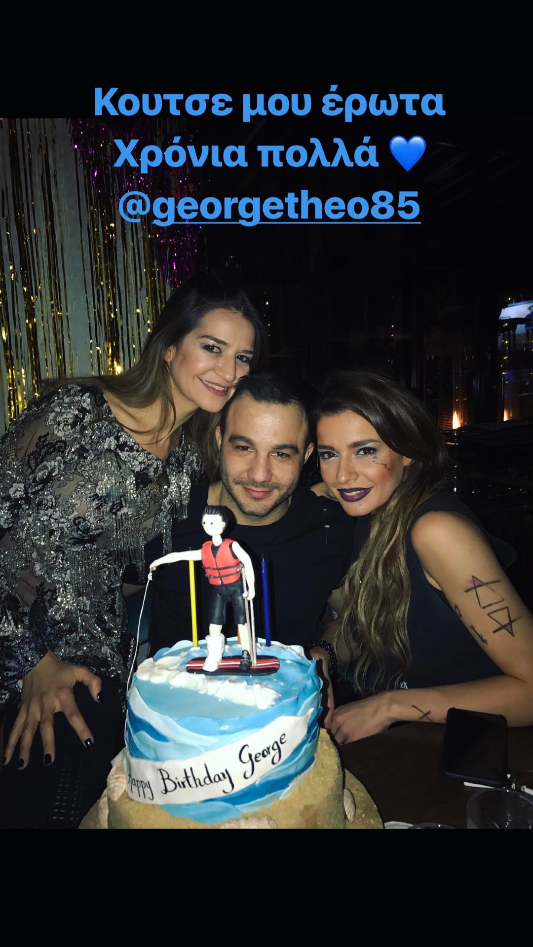 Τα γενέθλια του γιόρτασε χθες βράδυ ο Γιώργος Θεοδότου μαζί με την οικογένειά του, πολύ καλούς του φίλους και φυσικά τη σύντροφό του Χαριτίνη Ηλιάδου. Το party που πραγματοποιήθηκε σε γνωστό μαγαζί της Λεμεσού δεν θα μπορούσε να μην είχε καρναβαλίστικό χρώμα καθώς η πόλη αυτές τις μέρες κινείται φυσικά σε ρυθμούς καρναβαλιού. Εκείνο που έκλεψε τις εντυπώσεις και φυσικά πρόκαλεσε γέλιο ήταν η τούρτα αφού έδειχνε το Γιώργο Θεοδότου με πατερίτσες καθώς όπως σας ενημερώσαμε ο ίδιος βρέθηκε πρίν από δύο εβδομάδες στο Λονδίνο όπου υπεβλήθη σε εγχείηση στα πόδια. Μάλιστα η Χαριτίνη Ηλιάδου του ευχήθηκε με τον πιο χιουμοριστικό τρόπο ενώ και η αδερφή του Ελίνα Θεοδότου πήρε το μικρόφωνο και τραγούδησε για τον μικρό της αδερφό που του έχει αδυναμία. Δείτε φωτογραφίες και βίντεο από τη χθεσινή βραδιά.