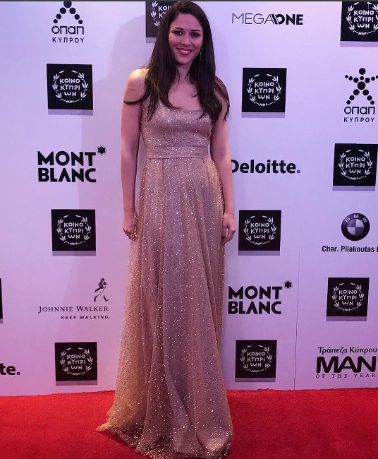 Η Στέλλα Στυλιανού επέλεξε μία maxi δημιουργία την οποία συνδύασε με εντυπωσιακά σκουλαρίκια escluso.