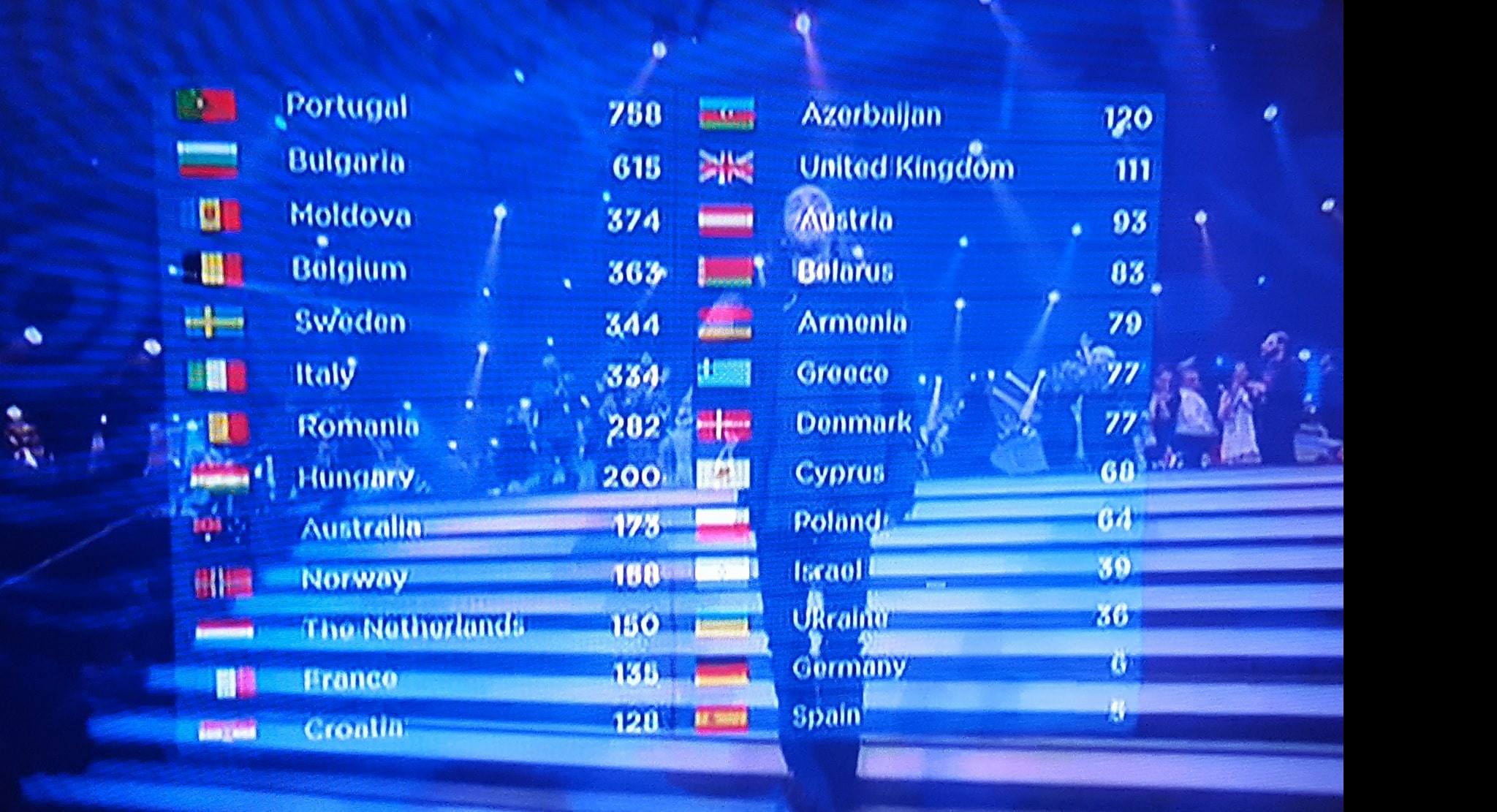 Ολοκληρώθηκε η φετινή Eurovision, στο Κίεβο, όπου νικήτρια χώρα με βάση τις ψηφοφορίες των επιτροπών και του κοινού αναδείχθηκε η Πορτογαλία, για πρώτη φορά στην ιστορία της.