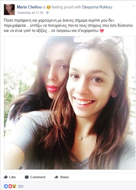 Ο Στέλιος Ρόκκος που δεν έκρυψε ποτέ την αδυναμία του στην κόρη του για άλλη μια φορά η 17χρονη Δέσποινα τον κάνει υπερήφανο. Η ίδια πέρασε στο Πανεπιστήμιο της επιλογής της, στο Εθνικό και Καποδιστριακό των Αθηνών, στο τμήμα της νομικής και η οικογένεια πλέει σε πελάγη ευτυχίας. Τα χαρμόσυνα νέα τα έκανε γνωστά στο κοινό μέσω facebook η πρώην σύντροφος του τραγουδιστή και μητέρα της μικρής γράφοντας: "Πόσο περήφανη και χαρούμενη με έκανες σήμερα κορίτσι μου δεν περιγράφεται …ελπίζω να πετυχαίνεις πάντα τους στόχους σου όσο δύσκολοι και να είναι γιατί το αξίζεις …σε λατρεύω και σ’ ευχαριστώ".