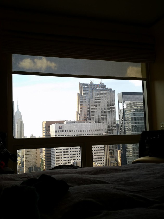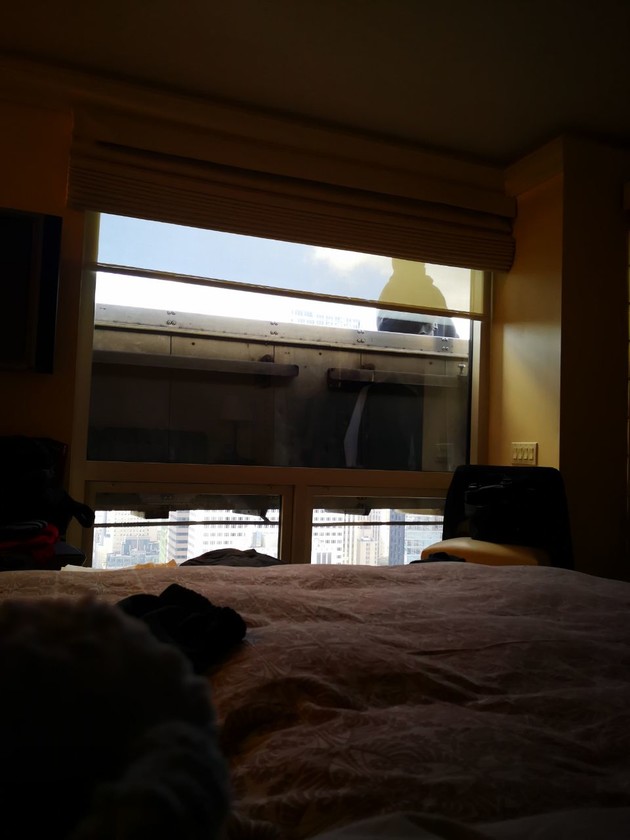 Ενώ βρισκόταν στο δωμάτιο του ξενοδοχείου, όπου διαμένουν, στον 40ο όροφο, ξαφνικά είδε τον ουρανό να σκοτεινιάζει και έναν άνθρωπο να ξεπροβάλλει από το παράθυρό της, γεγονός που την τρόμαξε. Μάλιστα, η ίδια ανήρτησε φωτογραφίες στο προσωπικό της blog στο queengr ενημερώνοντάς μας για το περιστατικό.