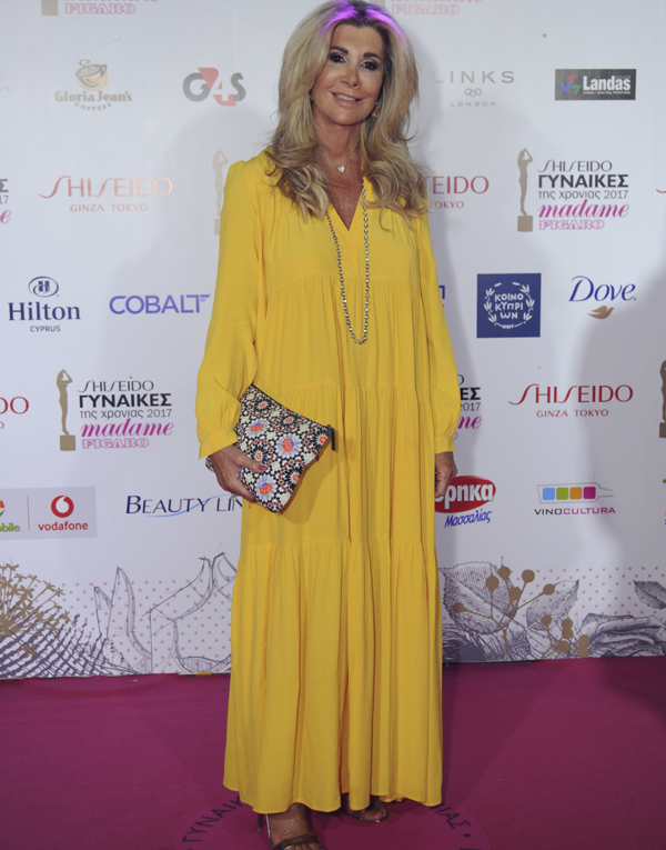 H Μαρία Αριστείδου με φόρεμα που φέρει την υπογραφή της