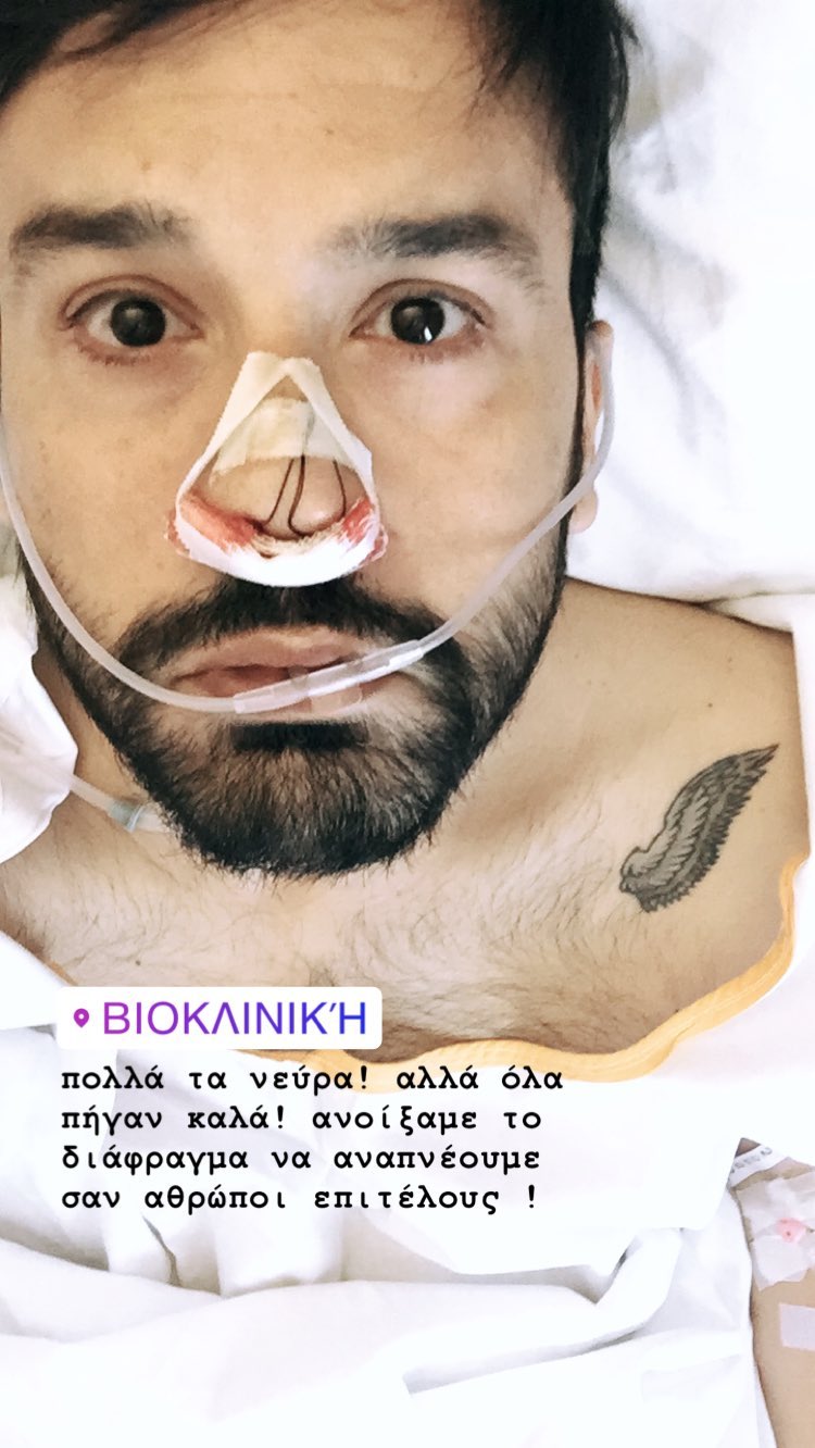 Ανησυχία προκάλεσε στους διαδικτυακούς του φίλους ο πολύ αγαπημένος Έλληνας τραγουδιστής, το πρωί της Τετάρτης, 30 Μαϊου, όταν ανήρτησε στο instastory στον προσωπικό του λογαριασμό μία εικόνα, αμέσως μετά το χειρουργείο στο οποίο υπεβλήθη.