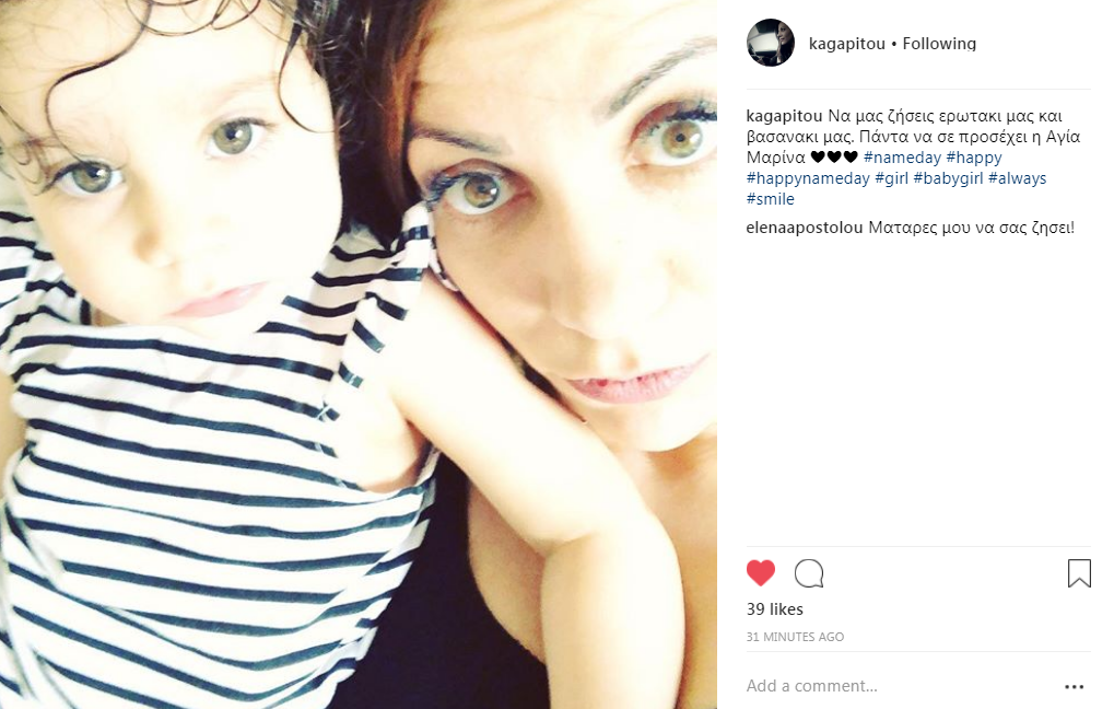 Την ονομαστική της γιορτή έχει σήμερα, 17 Ιουλίου, η κορούλα της δημοσιογράφο και η ίδια θέλησε να της ευχηθεί και διαδικτυακά, αναρτώντας μία φωτογραφία τους και γράφοντας στη λεζάντα: “Να μας ζήσεις ερωτακι μας και βασανάκι μας. Πάντα να σε προσέχει η Αγία Μαρίνα”.