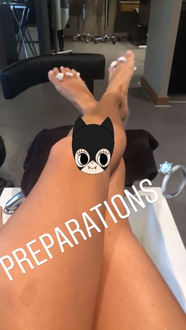 Η ίδια, περιποιείται τον εαυτό της, κάνοντας πεντικιούρ, ενώ έγραψε σε μία από τις εικόνες που ανήρτησε: “Τρεχάτε ποδαράκια μου”, αφήνοντας να εννοηθεί πως έχουν μπει σε τελική ευθεία με τις τελευταίες λεπτομέρειες.