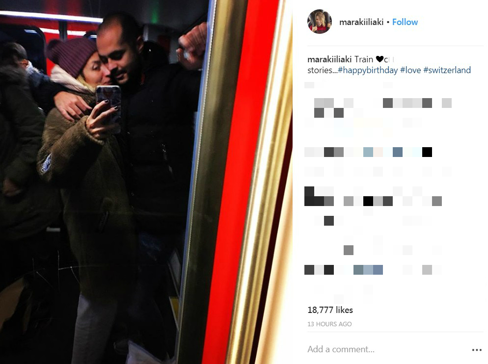 Η ίδια μάλιστα, δεν δίστασε να μοιραστεί με τους διαδικτυακούς της φίλους μέσα από τον προσωπικό της λογαριασμό στο instagram, ένα στιγμιότυπο αγκαλιά με εκείνον στο τρένο, εκφράζοντας του τις ευχές και τον έρωτά της.