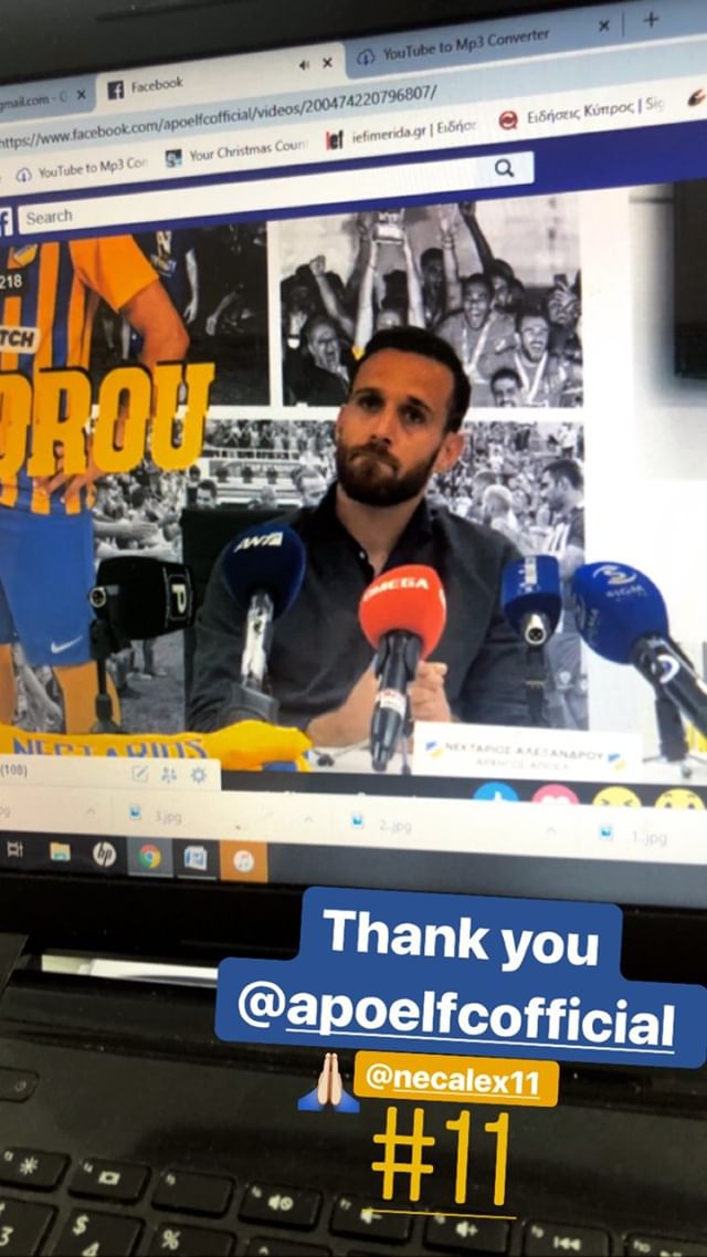 Κλείνοντας ο ποδοσφαιριστής, επεσήμανε πως το αυριανό τελευταίο του παιχνίδι με τη φανέλα του ΑΠΟΕΛ κόντρα στην Αγία Νάπα, είναι ιδιαίτερα σημαντικό καθώς είναι τα γενέθλια τόσο του ίδιου όσο και της κόρης του, Αριάδνης: “Αύριο όμως, σε μια σημαδιακή και ξεχωριστή μέρα για μένα, στα γενέθλια εμένα και της κόρης μου θα αποχαιρετίσω αγωνιζόμενος όσο κόσμο θα παρευρεθεί στο γήπεδο”.