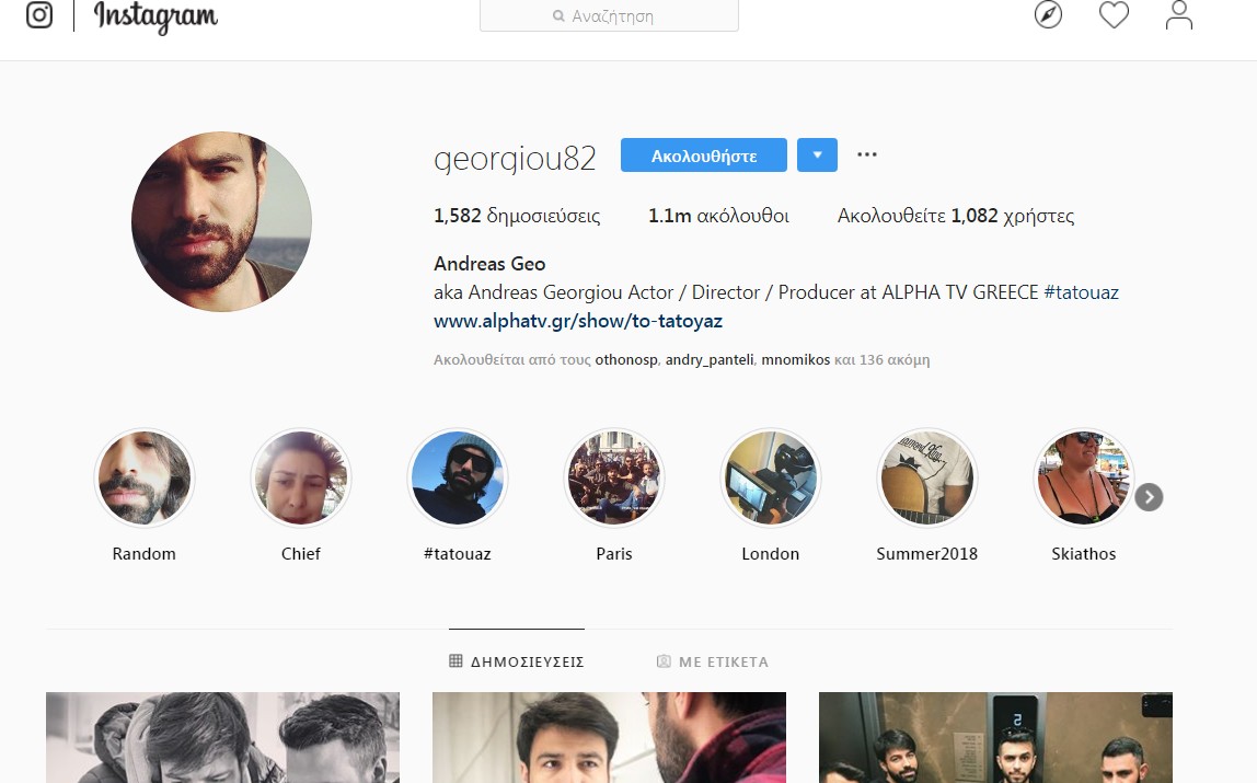 Στην 1η θέση ο Αντρέα Γεωργίου που έχι πάνω από ένα εκατομμύριο followers στον προσωπικό του λογαριασμό στο Instagram