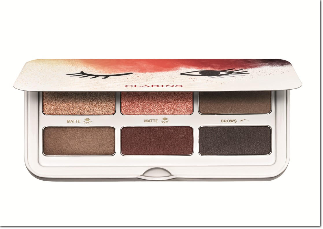 Τολμήστε να δημιουργήσετε ένα look για τα μάτια το οποίο θα ξεχωρίζει σε όλες τις φωτογραφίες! Η Clarins σας καθοδηγεί με αυτή την ακαταμάχητη παλέτα σκιών μέσα σε μια διασκεδαστική συσκευασία που θυμίζει smartphone. Ready In A Flash- τρία απλά βήματα που φωτίζουν τα βλέφαρα, ανοίξτε την περιοχή του ματιού και σχηματίστε τα φρύδια, ακριβώς σαν αυτά τα κορίτσια που είναι "απόλυτα" συνδεδεμένα. Έτοιμη για μια φωτογραφία; Εφαρμόστε το χρυσό highlighter ή το ζωντανό ροζ. Χρησιμοποιήστε την έντονη βαθιά κόκκινη απόχρωση ή το απαλό μπεζ για να δημιουργήσετε βάθος. Εύκολα σχηματίστε τα φρύδια με την βοήθεια και των ελαφριών και των σκούρων αποχρώσεων.