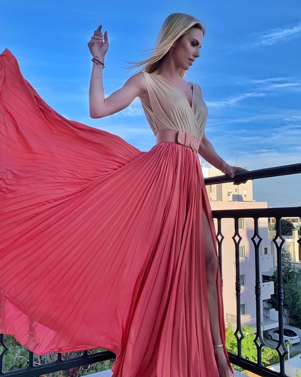 Η παρουσιάστρια έλαμψε στη σκηνή των βραβείων επιλέγοντας δημιουργία από τους Mi-Ro Designers, ολοκληρώνοντας την εμφάνισή της με πέδιλα από Sante Shoes.
