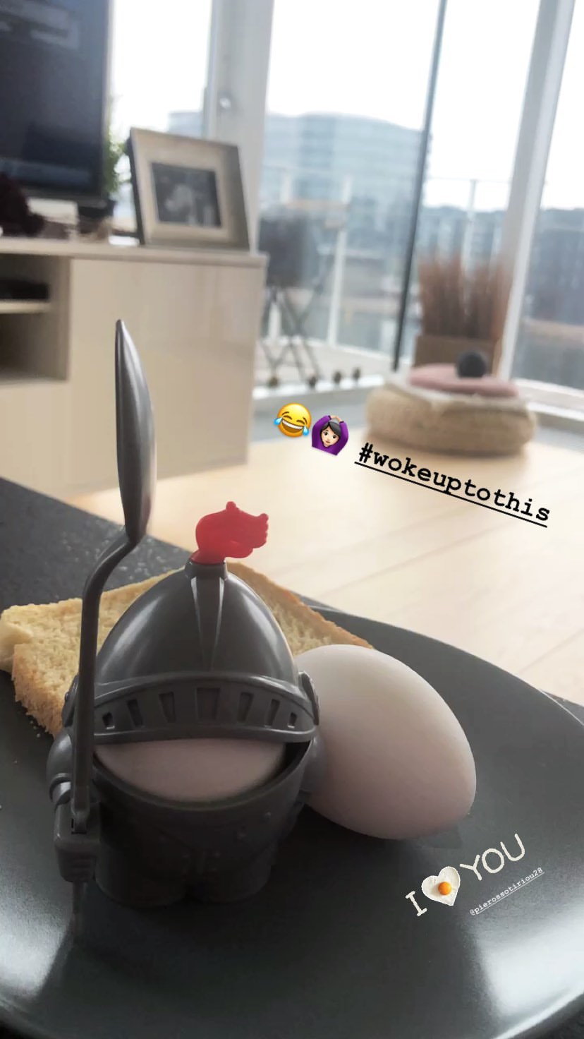 Ο ίδιος της έβαλε το αυγό που της ετοίμασε σε μία πρωτότυπη θήκη, η οποία παραπέμπει σε πανοπλία μονομάχου. Η νεαρή παρουσιάστρια και blogger του ilovestyle.com μοιράστηκε το πρόγευμα που της ετοίμασε ο αγαπημένος της, εκφράζοντάς του την αγάπη της.