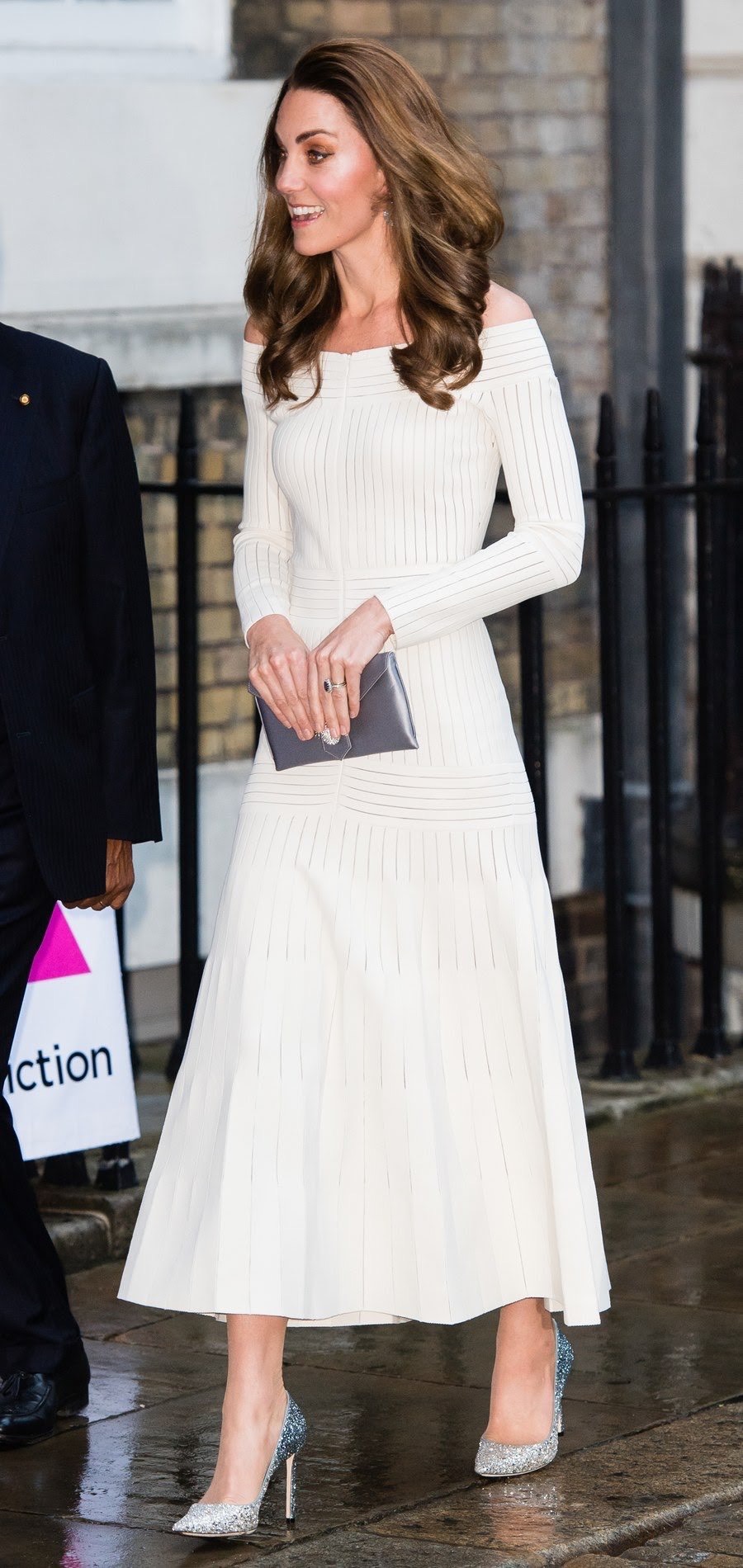 Πρόκειται για ένα κομμάτι το όποιο έχει ξαναφορέσει η Kate σε εμφάνιση της το 2016, αυτή τη φορά όμως φρόντισε το outfit της να είναι πιο εντυπωσιακό επιλέγοντας ένα ζευγάρι glittery γόβες Jimmy Choo. Η εμφάνιση της Kate λοιπόν είναι η απόδειξη πως οι λαμπερές statement γόβες σου δεν είναι αποκλειστικά κομμάτι της χειμερινή γκαρνταρόμπας, μπορείς να τις φορέσεις και με το αγαπημένο σου λευκό φόρεμα το καλοκαίρι σε μια βραδινή σου εμφάνιση.