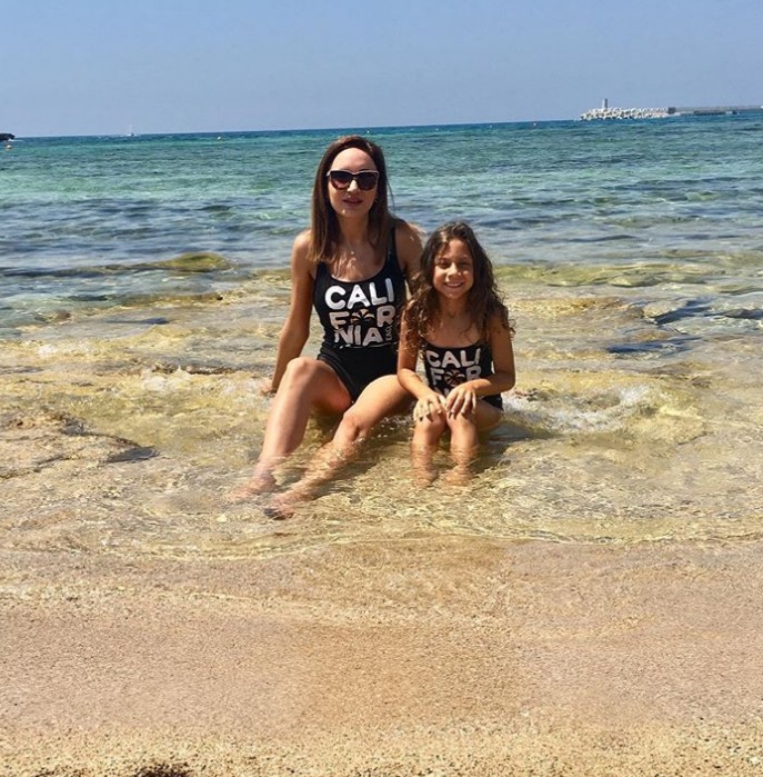 Το ζευγάρι απόλαυσε δροσιστικές βουτιές στην παραλία, την Κυριακή, 23 Ιουνίου και είδαμε τη σύζυγο του ποδοσφαιριστή με την κόρη τους, Αριάνα, να ποζάρουν με το ίδιοι μαγιό.