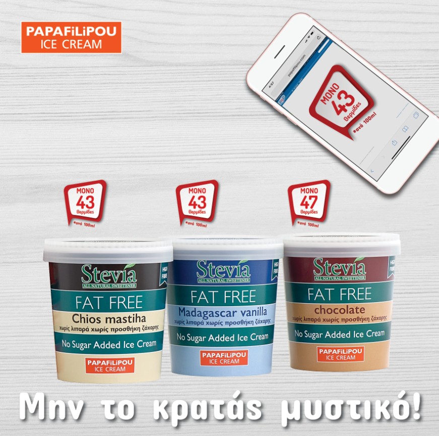 Παρασκευασμένα από φρέσκο Κυπριακό άπαχο γάλα, χωρίς ζάχαρη, με βιολογικό Στέβια Παραγουάης, χωρίς γλουτένη, χωρίς ζελατίνη, πλούσια σε φυτικές ίνες και πολύ χαμηλά σε θερμίδες, πάντα με τη σφραγίδα ποιότητας PAPAFiLiPOU, τα παγωτά με Στέβια είναι μια εναλλακτική πρόταση για όσους και όσες προσέχουν τη διατροφή τους.