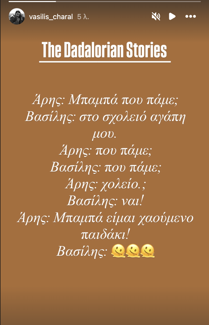 Ένα χαριτωμένο στιγμιότυπο μοιράστηκε με τους διαδικτυακούς του ακόλουθους, ο Βασίλης Χαραλάμπους, το πρωί της Τρίτης, 3 Φεβρουαρίου, μέσα από συνομιλία που είχε με τον γιο του, Άρη, πριν φτάσουν στο σχολείο.