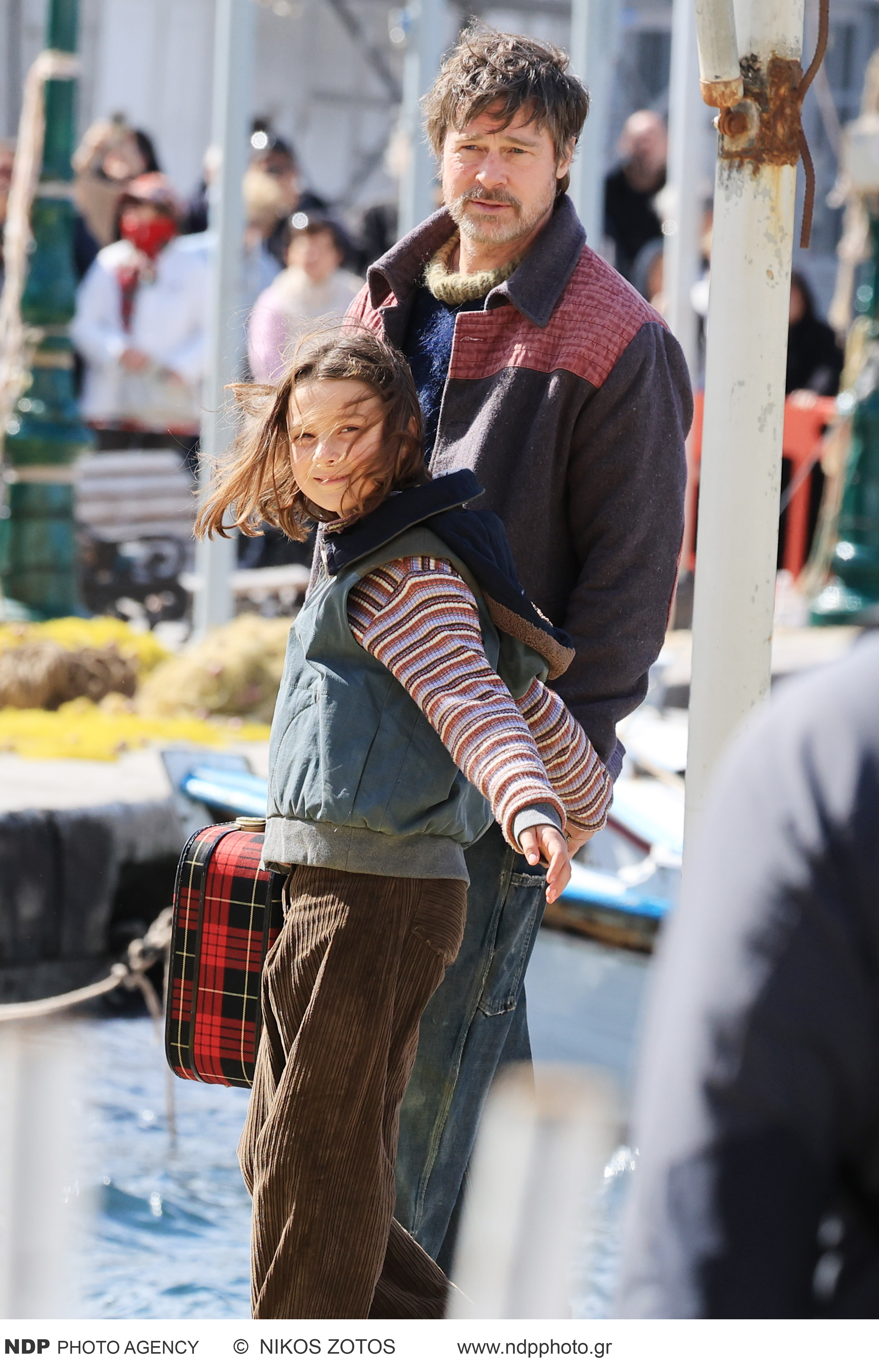 «Έχει επιστρατευθεί ένα vintage δελφίνι του 1980, για τις ανάγκες της ταινίας, η οποία διαδραματίζεται το 1989. Από αυτό, λοιπόν, το δελφίνι κατέβηκε ο Φρεντ Σκάλι, τον οποίο υποδύεται ο Brad Pitt. Ήταν μαζί με την υποτιθέμενη κόρη του, το κοριτσάκι με το οποίο συμπρωταγωνιστεί στην ταινία», μετέφερε η δημοσιογράφος του Star για τη σκηνή που διαδραματίστηκε στο λιμάνι. Δείτε πιο κάτω σχετικά στιγμιότυπα:
