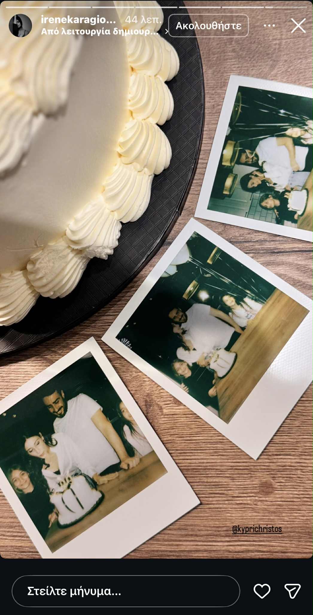 Μέσα από τα στιγμιότυπα που μοιράστηκε η Καραγιώργη, φαίνεται να σβήνει την τούρτα της αγκαλιά με τον μέλλοντα σύζυγο της, Χρήστο Κυπρή και τις δύο της κορούλες.