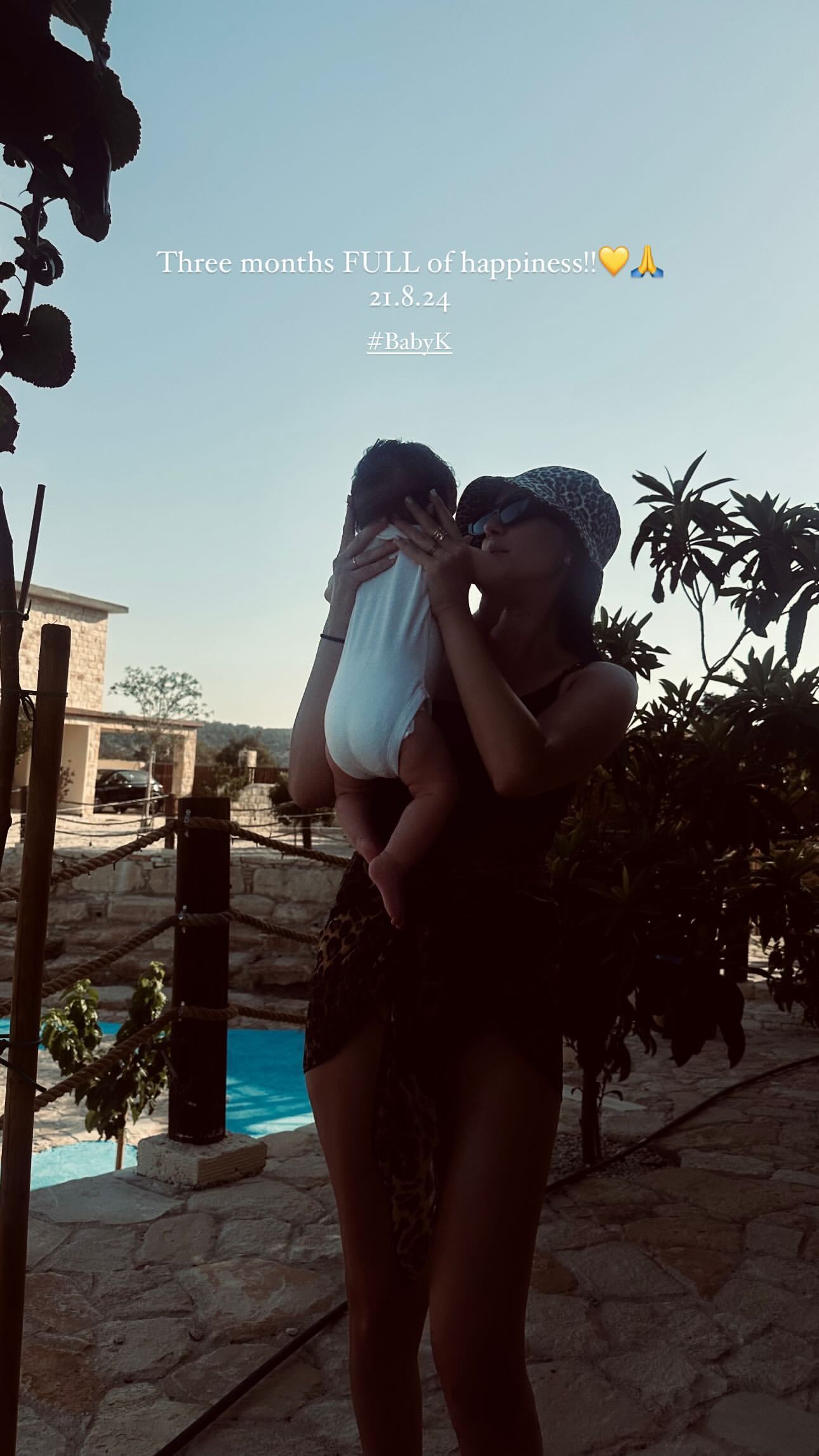 Η ευτυχισμένη μαμά, αναρτώντας μια γλυκιά εικόνα των δυο τους, στην οποία την βλέπουμε να κρατάει την μικρούλη της, ψηλά, γράφει τα εξής: «Τρεις μήνες γεμάτοι από ευτυχία».