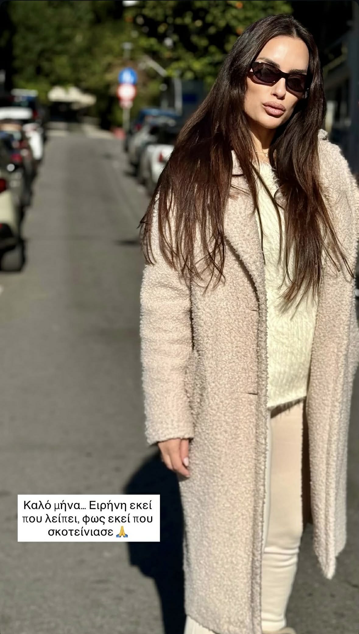 Πρωταγωνιστής της εμφάνισης της Ελπίδας Ιακωβίδου είναι το μακρύ teddy παλτό σε απαλή μπεζ απόχρωση. Χνουδωτό, ζεστό και διαχρονικό, λειτουργεί σαν στιλιστική «αγκαλιά» που χαρίζει αμέσως πολυτέλεια στο outfit. Το μήκος του επιμηκύνει τη σιλουέτα, ενώ η neutral απόχρωση το καθιστά ευέλικτο για αμέτρητους συνδυασμούς.